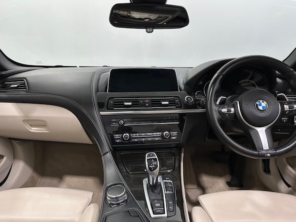 Our BMW 6 SERIES is finished in Black Colour and comes with optional extras worth of £6,690.APPLE CARPLAY & ANDROID AUTO REAR VIEW CAMERA AUTOMATIC ALL LED HEADLIGHTS SATELLITE NAVIGATION SYSTEM HEADS-UP DISPLAY FRONT & REAR PARKING SENSORS 20'' ALLOY WHEELS HARMAN KARDON SOUND SYSTEM LEATHER INTERIOR WITH FRONT HEATED & ELECTRIC SEATS BLUETOOTH WITH AUDIO STREAMING TWO-ZONE CLIMATE CONTROL ELECTRIC, HEATED & FOLDING SIDE-VIEW MIRRORS ELECTRIC TAILGATE CRUISE CONTROL DAB TUNER HEATED MULTIFUNCTIONAL STEERING WHEEL WITH PADDLE-SHIFTERS RAIN SENSORS USB & AUX CONNECTIVITY.This vehicle's specification has been provided by the leading data supplier CAP HPI, which provides vehicle data across the whole of the industry. However, we cannot guarantee the accuracy of any data provided by 3rd Party sources as the specification can sometimes vary. Please check with a salesperson and ensure you physically inspect the vehicle in respect of any items which may affect your decision to purchase. FOR FULL SPEC PLEASE CHECK BELOW