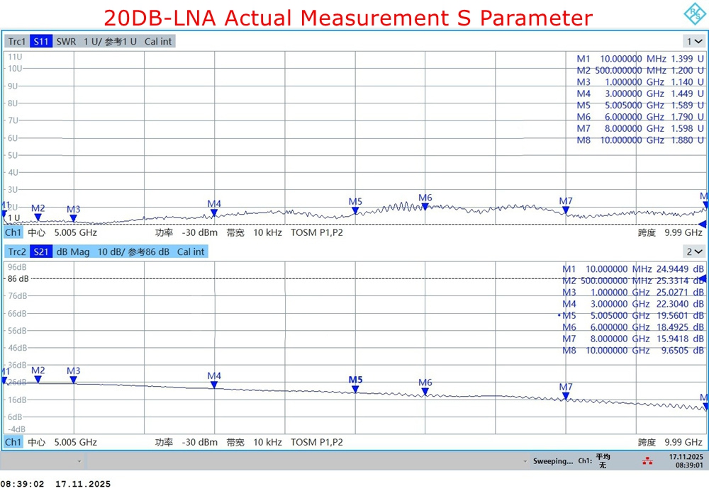 - Noise figure: NF=4-5dB (refers to measured curves for different frequencies)