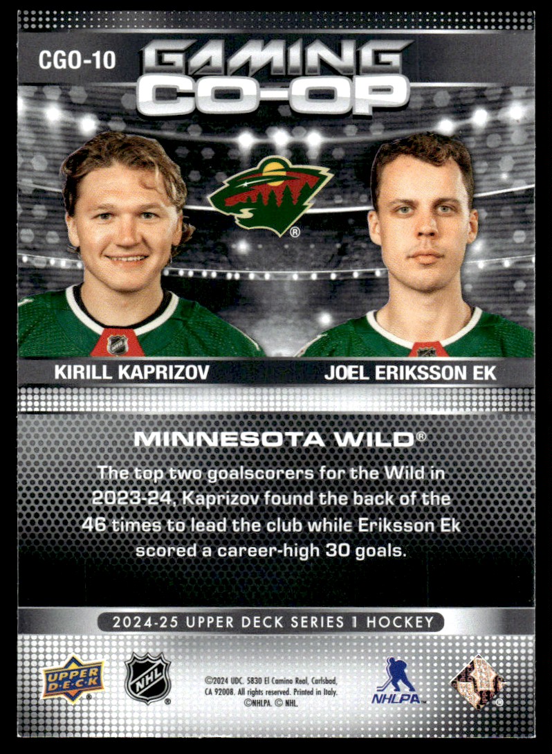 | 2024-25 Upper Deck Gaming Co-Op Kirill Kaprizov / Joel Eriksson Ek #CGO-10 | ||||||||||||||||