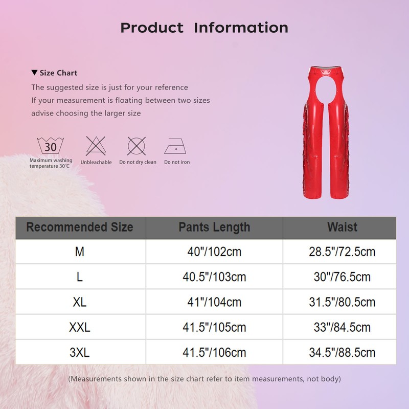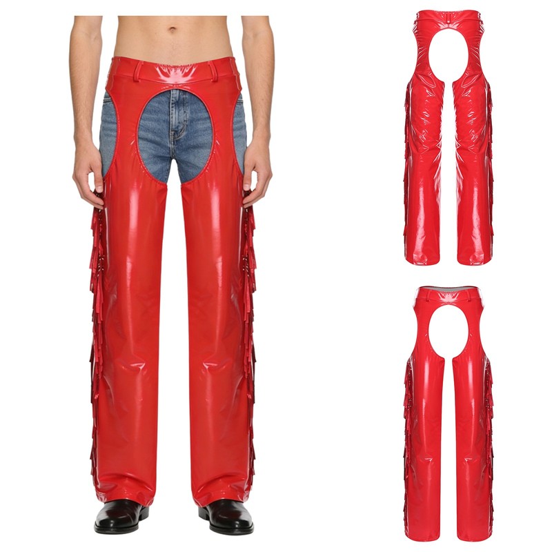 Men Pants Fringe Bottoms Overpants Cowboy Chaps Adjustable Trousers Open Disco