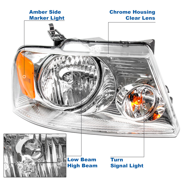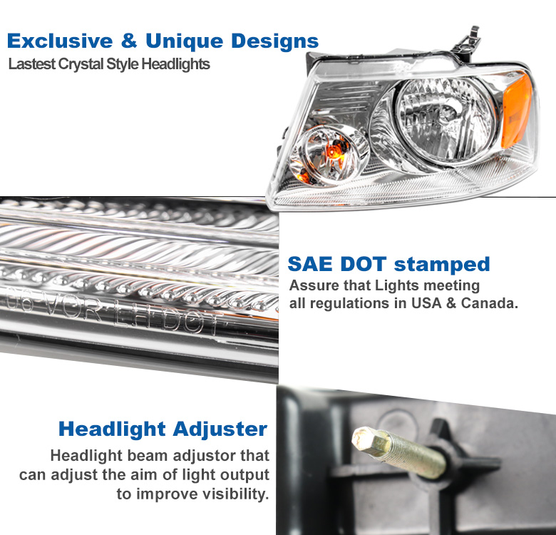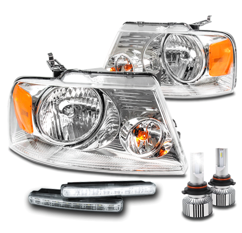 For 2004-2008 Ford F-150 Replacement Headlights w/6" White LED DRL + LED Bulbs - Chrome