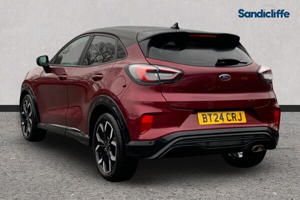This 2024 Ford Puma T Vivid Ruby Edition boasts a full service history, with its last service completed on 31st January 2026 at 21,500 miles, offering excellent peace of mind. This stylish compact SUV features a responsive 1.0L petrol hybrid engine, meeting Euro 6 emission standards. The Vivid Ruby Edition trim ensures a distinctive look and feel, making it a standout choice in its class.Experience impressive efficiency with this Ford Puma, achieving a notable 52 miles per gallon, which is better than many other vehicles of its type. Its low CO2 emissions further contribute to its economical and environmentally conscious performance. This combination of advanced hybrid technology, excellent fuel economy, and a comprehensive service record makes the 2024 Ford Puma T Vivid Ruby Edition a compelling option for any driver.