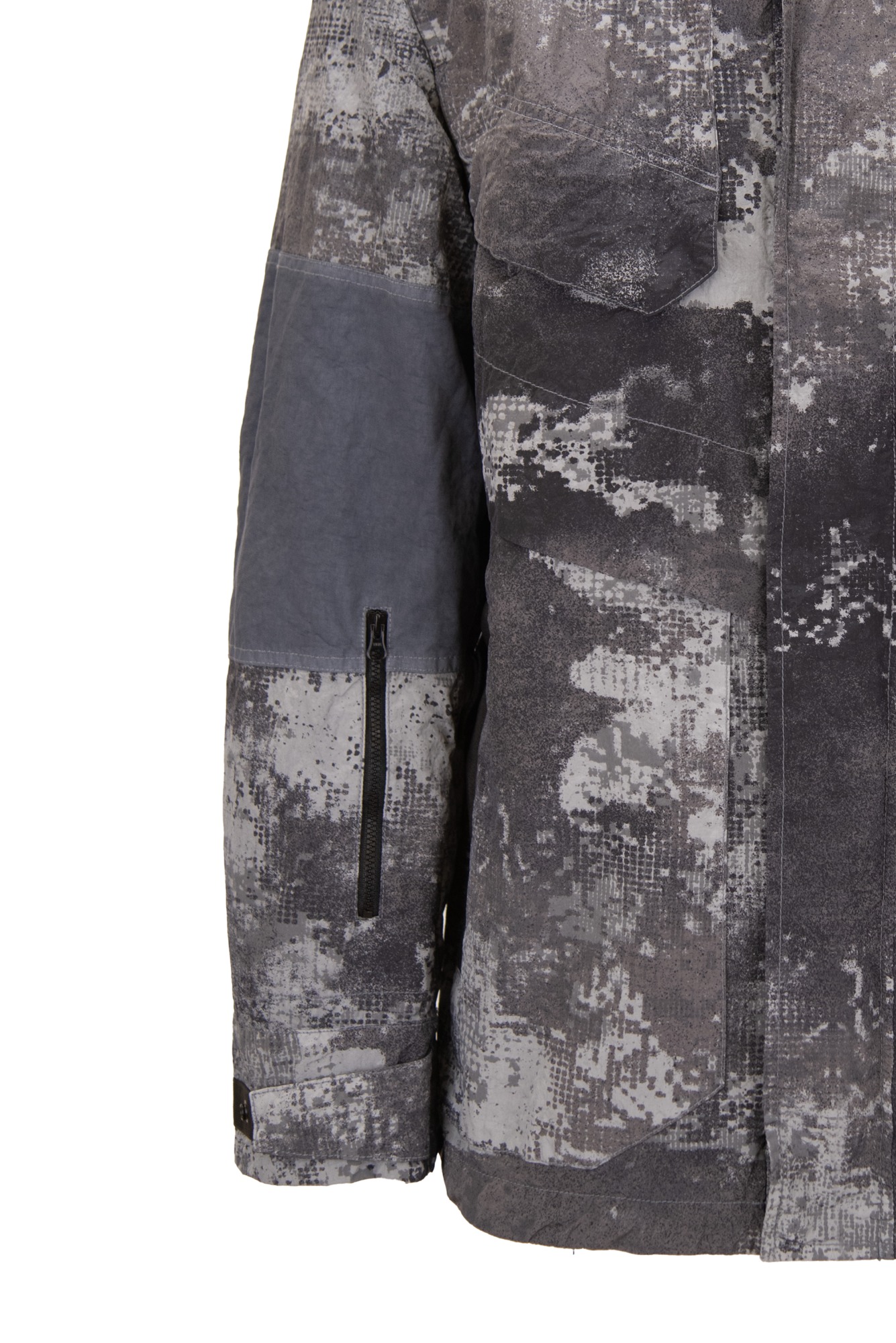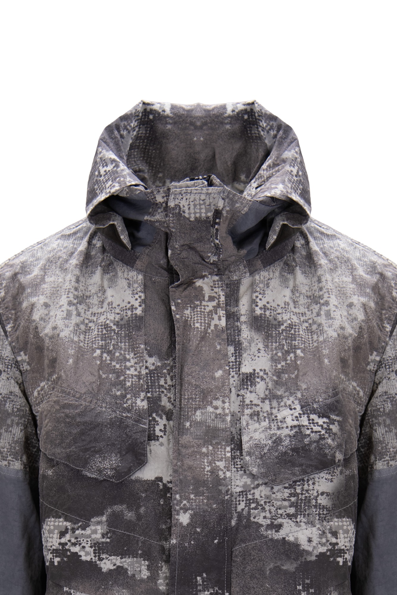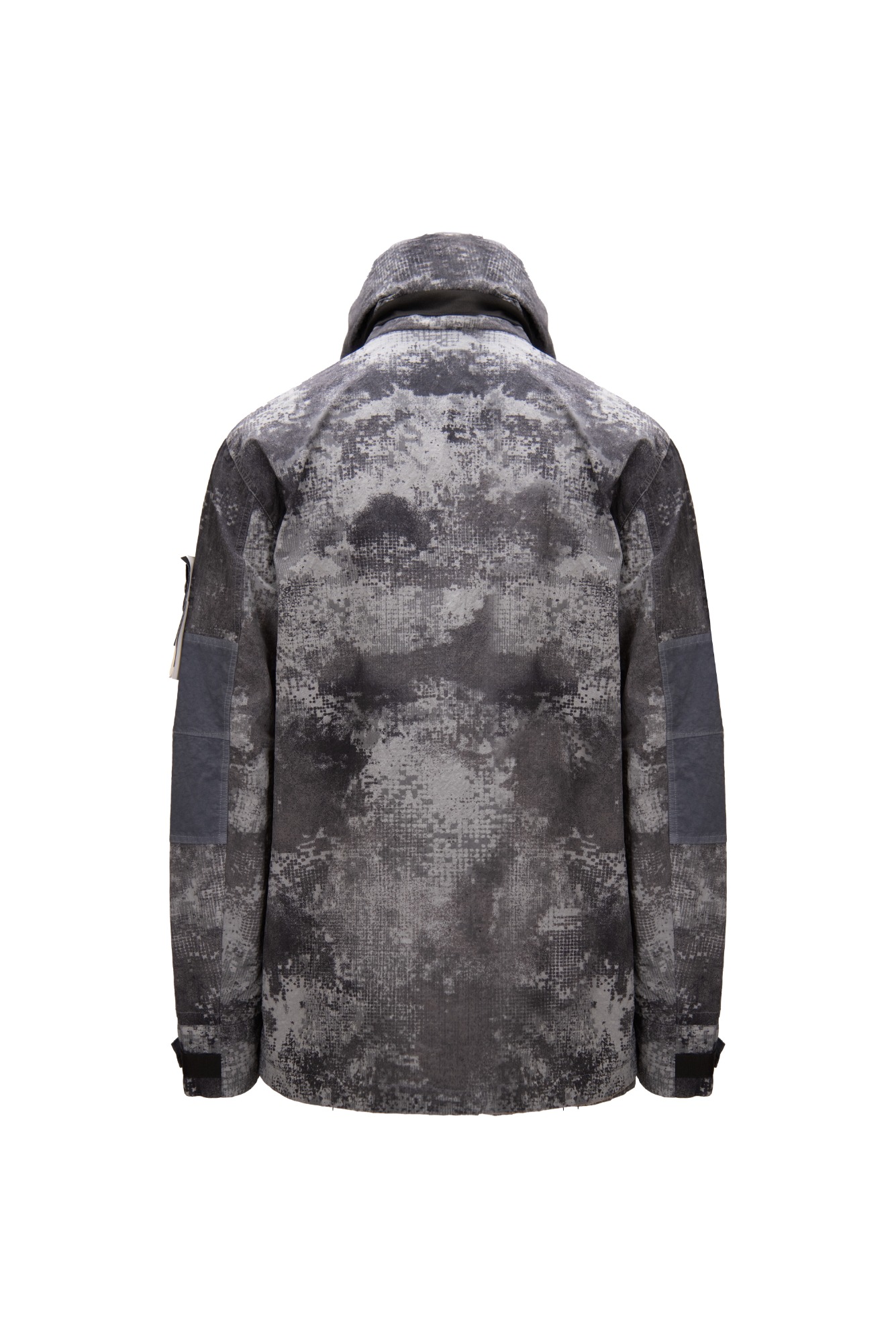 Men's jacket by Stone Island. Fabric made of 100% polyamide. Jacket with high collar and concealed hood with long sleeves, the latter feature snaps at cuff height for adjustment. Zippered compartments at sleeve height and front. Envelope pockets on front at chest height. Features Stone Island logo patch on left sleeve. Closure by snap buttons and double-slider zipper. Made in Italy.
