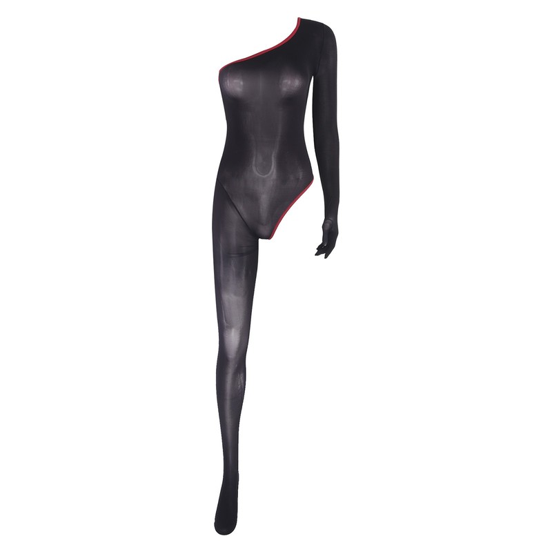 With its asymmetrical one-sleeve and one-legging style, it showcases a bold and fashionable aesthetic that is in line with the latest fashion trends.