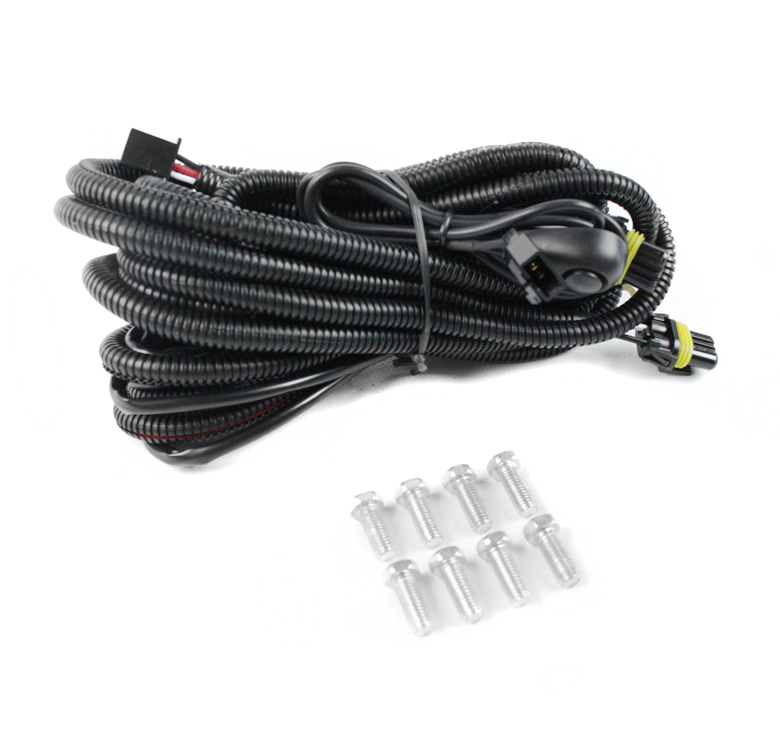A pair of fog lights (driver and passenger side), wiring harness, and switch
