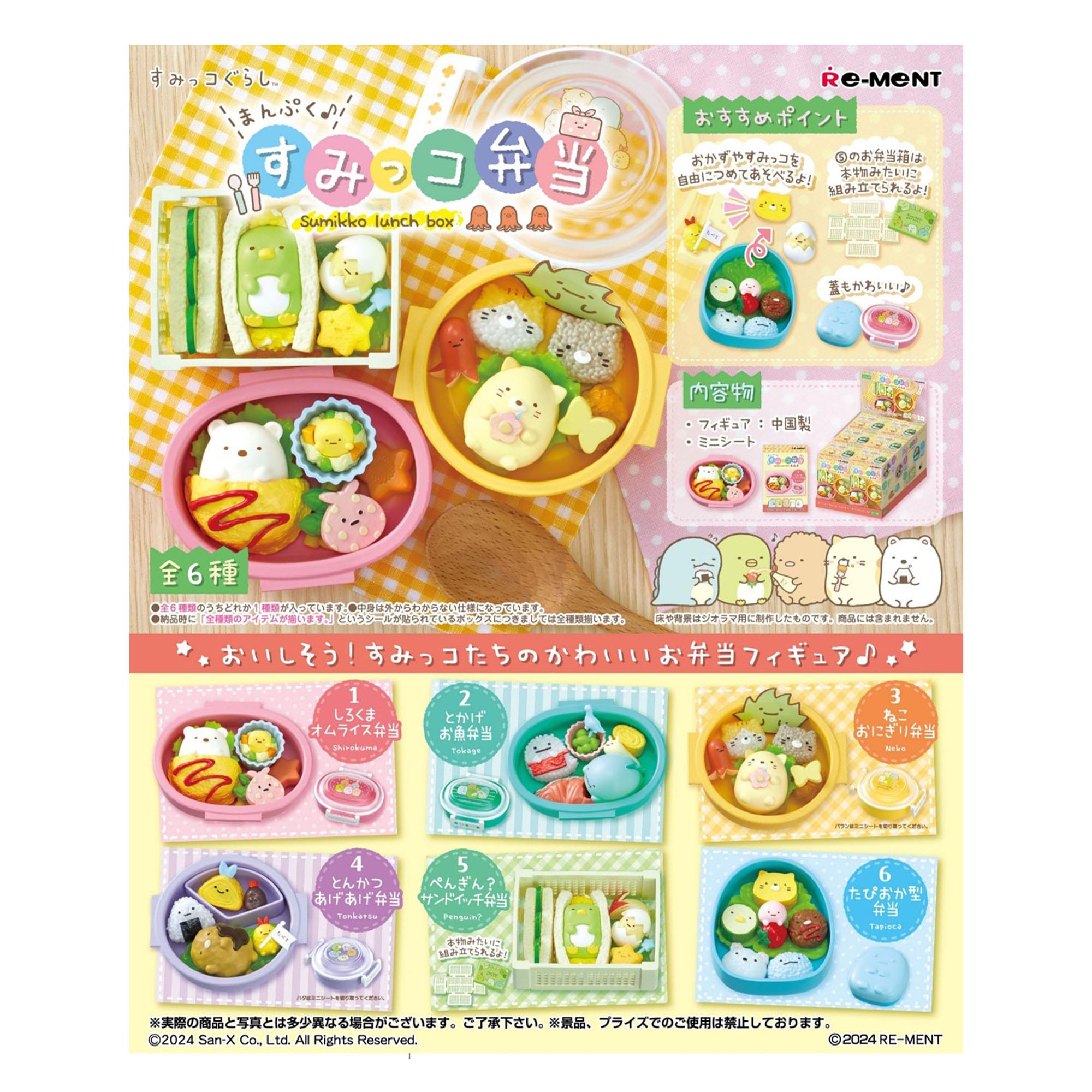 Presenting Sumikko's Bento Box Series. These small collectibles feature animal-themed bento boxes full of yummy food. Includes one (1) of six (6) possible designs to collect, including Shirokuma Omrice Bento, Tokage Fish Bento, Cat Onigiri Bento, Tonkatsu Raise Bento, Penguin? Sandwich Bento, and a Tapioka-shaped lunch box. Selection is random. Collect them all!