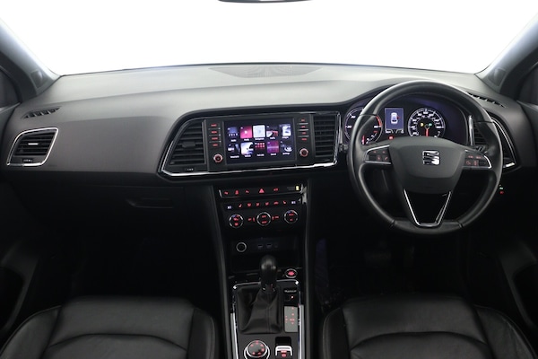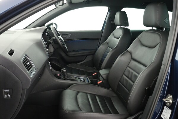 ..'Lights On' Reminder warning buzzer, Driver alert system, Full Link App interface, Low fuel warning light, Multi function display, Outside temperature gauge, Rear parking sensor, Rear view camera, Remote fuel flap release, SEAT Drive profile, SEAT logo boot release, Trip computer, Comfort suspension, XDS electronic differential lock, Steering wheel mounted audio/phone controls, Aluminium front door sills, Aluminium roof rails, Body colour bumpers, Body colour door handles, Body colour door mirrors, Chrome side window trim, Chromed centre radiator grille surround, Cornering front fog lights, Dark tinted rear windows, Electric folding door mirrors, Electrically adjustable and heated door mirrors, Front and rear electric windows, LED daytime running lights, LED Headlights, LED tail lights, Rear wash/wipe, Twin chromed exhaust pipes, Welcome lighting, 12V power point front, 3 height adjustable rear headrests, 60/40 split folding rear seat, Adjustable front armrest with storage compartment, Driver/passenger lumbar adjustment, Driver/passenger sunvisors with illuminated vanity mirrors, Dual zone climate control, Footwell illumination, Front cupholders x 2, Front reading lights, Front seat back storage pockets, Height adjustable front headrests, Height adjustable passenger seat, Illuminated boot, Illuminated glovebox, Isofix child seat preparation, Leather steering wheel and gear knob, Leather upholstery, Rear armrest, Rear central air outlet, Rear reading lights, Roof mounted sunglasses holder, Steering wheel gearshift paddles, Convenience pack - Ateca, Seat Media System Plus pack - Ateca, Winter Pack - Ateca, 3x3 point rear seatbelts, ABS, Auto hold function, Automatic post collision braking, Curtain airbags, Driver/Front Passenger airbags, Drivers knee airbag, Electronic parking brake, Electronic stability control, ESP+EBA, Front and rear seatbelt reminder, Front assist including city emergency braking, Front passenger airbag deactivation, Front side airbags, Hill hold control, Predictive pedestrian protection, Tiredness recognition system, Traction control, Tyre pressure monitoring system, Immobiliser, Locking wheel bolts, Remote central locking, Volumetric alarm with back up horn, Chrome effect dashboard facia