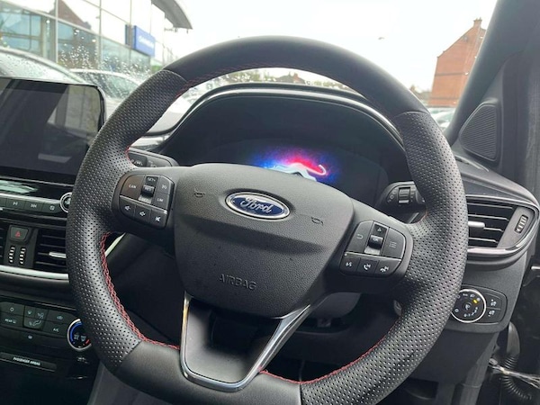 Ford SYNC 3 Navigation, Cruise Control with Intelligent Speed Assist, Pre-Collision Assist with Autonomous Emergency Braking and Pedestrian-Cyclist Detection, Rear Parking Sensors, Trip-Fuel Computer, Tyre Pressure Monitoring System - TPMS, 17in Alloy Wheels - 5x2 Spoke - Black Machined Finish, Acoustic Laminated Windscreen, Active Grille Shutter, Ecoboost Hybrid Tailgate Badge, Electric Windows - Front and Rear, Front Bumper - Unique ST-Line Sport Design - Body Colour, Large Rear Spoiler - Body Colour with Centre High Mounted Stop Light, Locking Wheel Nuts, Lower Bodyside Moulding - Body Colour, Power-Foldable Heated Door Mirrors with Puddle Lamps, Puma Badge, Quickclear Heated Windscreen, Rear Bumper Body Colour - Diffuser, ST-Line Badge, ST-Line Body Styling Kit, Tailgate - Manual, Tyre Inflation Kit, Automatic Headlights with Rain-Sensing Wipers and Auto High Beam, Front Fog Lights with Cornering lights and LED Rear Lamps, Projector Headlamps with LED Daytime Running Lights, Automatic Dimming Rear View Mirror, Centre Console - Premium with Openable Stowage Area with USB Connectivity - 2 Cupholders and 12v Power Point, Courtesy Lights - Ambient LED Courtesy Lighting - Single Colour, Drivers Manual 4-Way Seat Adjustment with Manual Lumbar Adjust, Floor Mats - Front and Rear, Ford MegaBox Extended Bootspace, Ford Power Starter Button, Front Seats - Sports Style, Full Digital 12.3in Instrument Cluster, Gear Knob - Aluminium, Handbrake - Black Sensico Trimmed with Stitching, Headliner