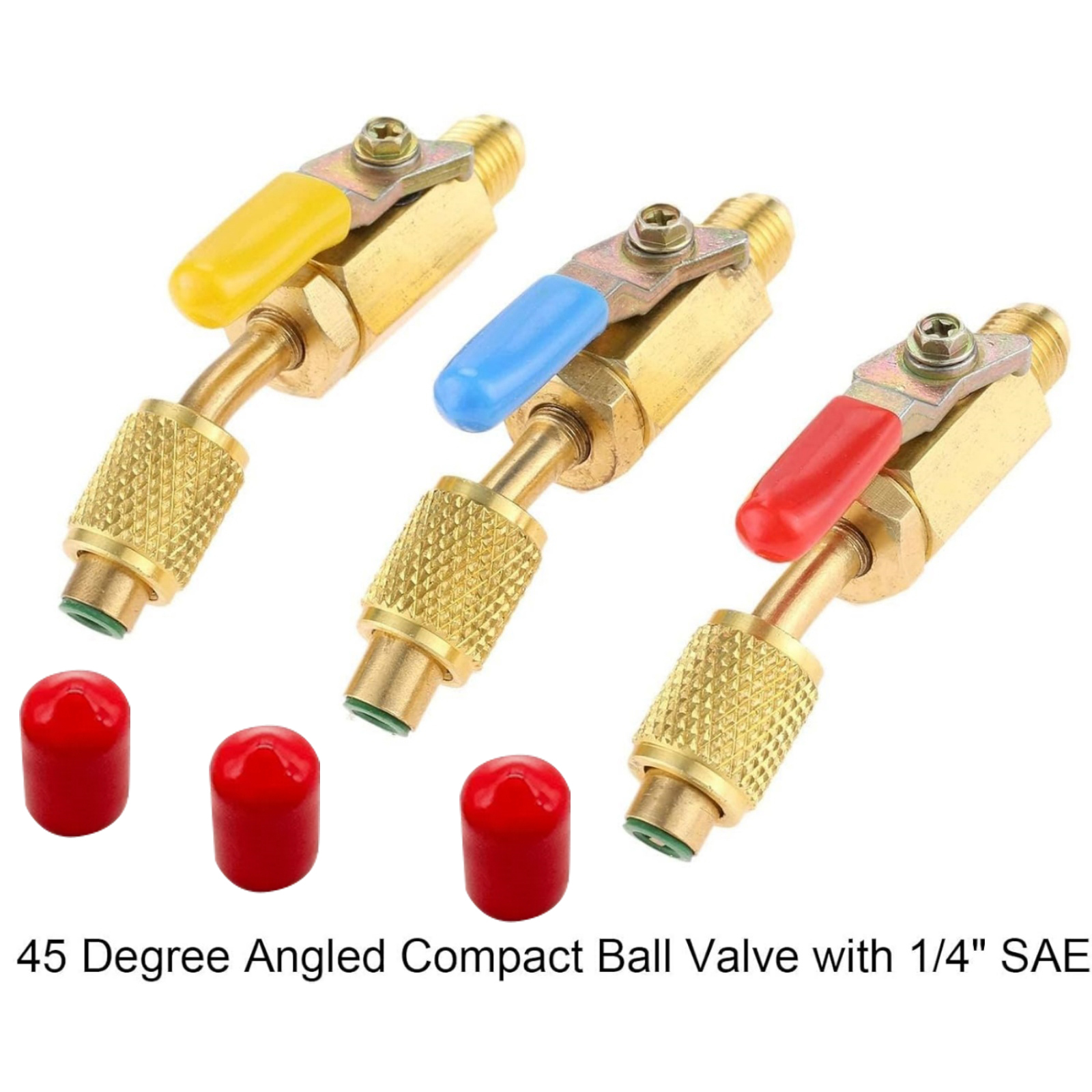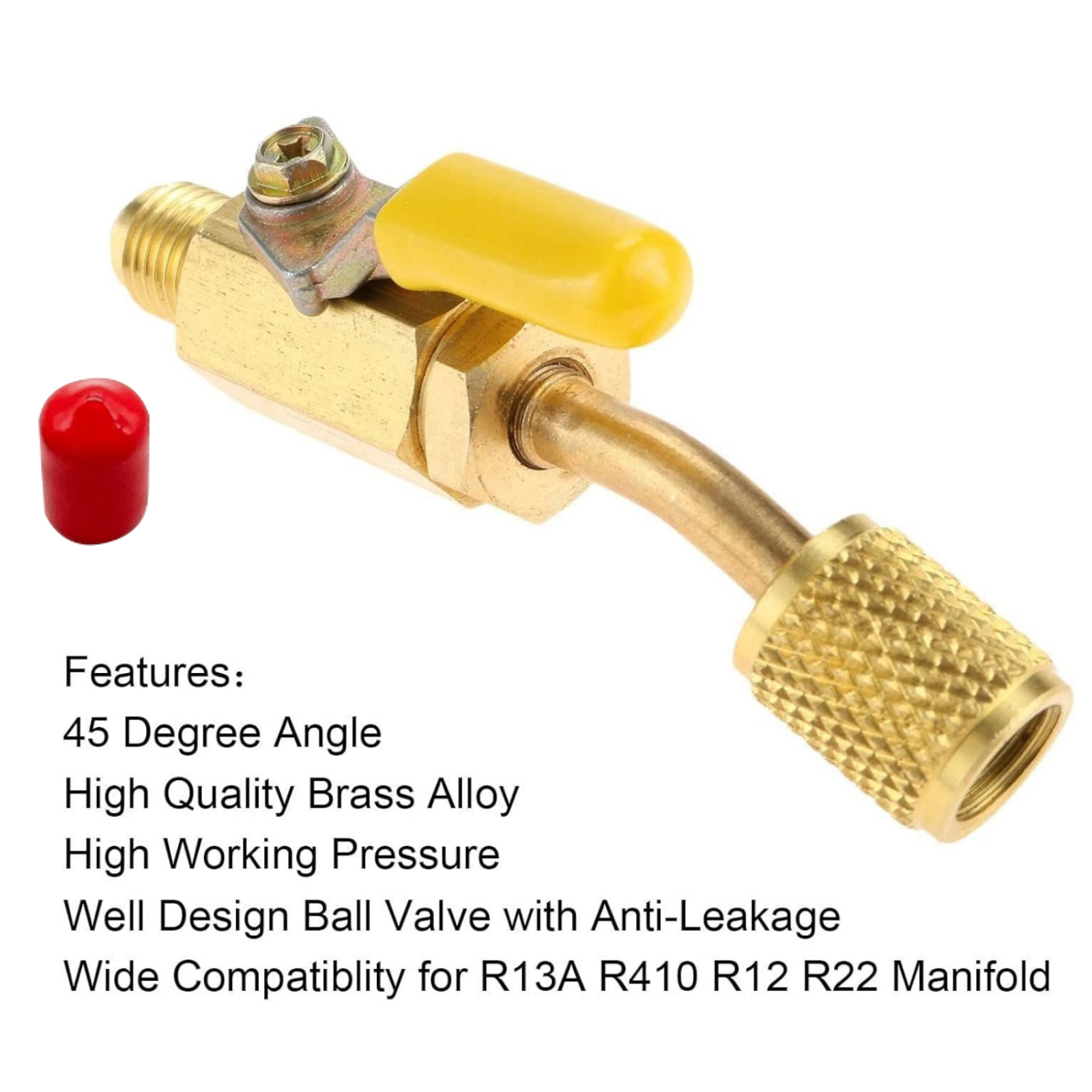2. Angled Ball Valve: The Angled Compact Ball Valve Made By High Quality Brass Alloy. Build In Thick Rubber Gasket Provide Tight Seal For Long Term Use. Meets SAE, EPA And Ul Requirements For Containment Of Refrigerant.