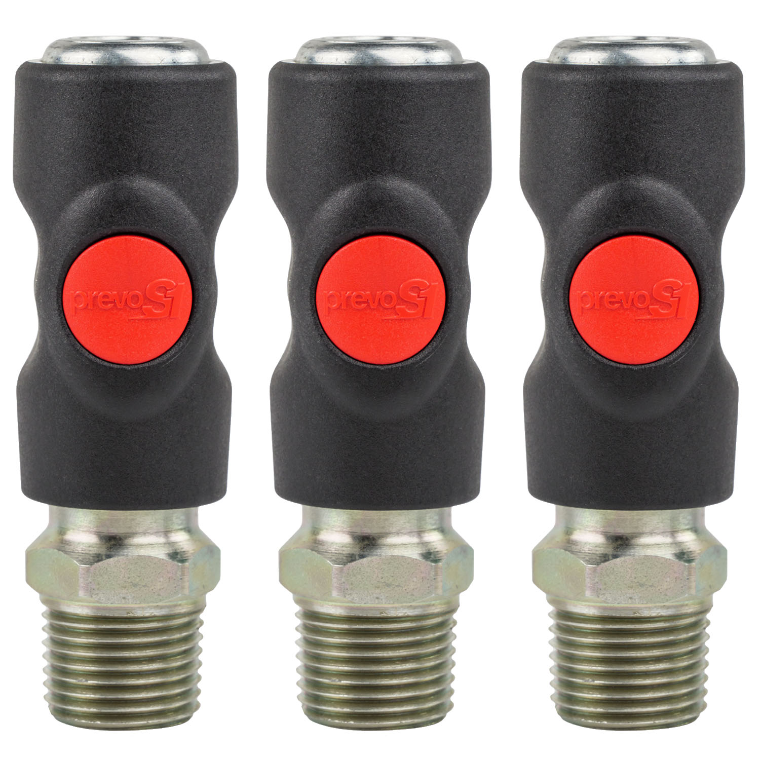 Prevost USI061253 Truflate/Automotive Style 1/2" MNPT Push Button Couplers - 3 Pack