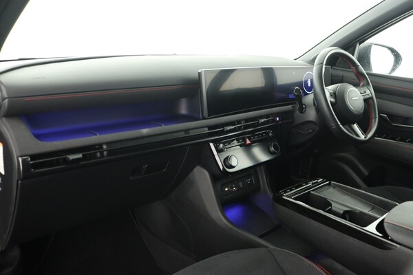 ..12.3'' LCD display with driver's supervision instrument cluster, 12.3'' widescreen navigation with bluelink and mapcare, Blind spot view monitor, Bluetooth system, Cruise control - smart adaptive speed control with stop and go function, Digital clock, Drive mode selector, Driver attention warning, E-call, Emergency stop signalling system, Forward Collision Avoidance Assist (FCA) - Car, Pedestrian and Cycle, Forward Collision Avoidance Assist Junction Turning (FCAJX), Front and rear parking sensors, Front, rear and side parking distance warning, Head up Display, Highway Driving Assist (HDA), Hyundai road side assistance, Intelligent speed limit assist, Lane follow assist, Lane keep assist, Over the air updates(OTA), Parking collision avoidance assist (PCA), PAS, Rear camera and guidance parking system, Rev counter, Smart power tailgate, Surround view monitor, Tailgate open warning light, Trip computer, Trip odometer, Voice recognition, Water temperature gauge, Windscreen washer fluid sensor and warning indicator, Wireless Apple CarPlay/Android Auto, Wireless phone charging pad, 2 front and 2 rear USB-C ports, DAB Digital radio, Krell premium audio system with 8 speakers and subwoofer, Steering wheel mounted audio/phone controls, Adjustable intermittent front windscreen wipers with aero wiper blade, Auto dimming rear view mirror, Automatic defog system, Automatic headlights with dusk sensor, Automatic windscreen wipers with rain sensor, Body colour bumpers, Body colour door mirrors with integrated indicators, Body colour exterior door handles, Body coloured wheel arches, Electric tilt/slide panoramic sunroof, Electrically adjustable, heated and power folding door mirrors, Follow me home headlights, Front and rear electric windows with anti-trap mechanism and one touch control, Front fog lights, Glossy black bumper mouldings, LED 3rd brake light, LED daytime running lights, LED rear lights, Matrix LED headlights, Positioning Lights - LED, Privacy glass - Rear windows and tailgate, Rear side wing doors, Rear wash/wipe with intermittent wipe setting, Roof rails, Soft touch rear door paneling, Tinted glass with windscreen shade band, Trailer stability assist, 12V power outlets in front console and luggage compartment, 3 seat bench in 2nd row, 40/20/40 split folding rear seat, 64 colours interior ambient lighting, Adjustable head restraints (Up and down), Cupholders in rear armrest, Door courtesy lights, Driver and passenger sunvisors with illuminated LED