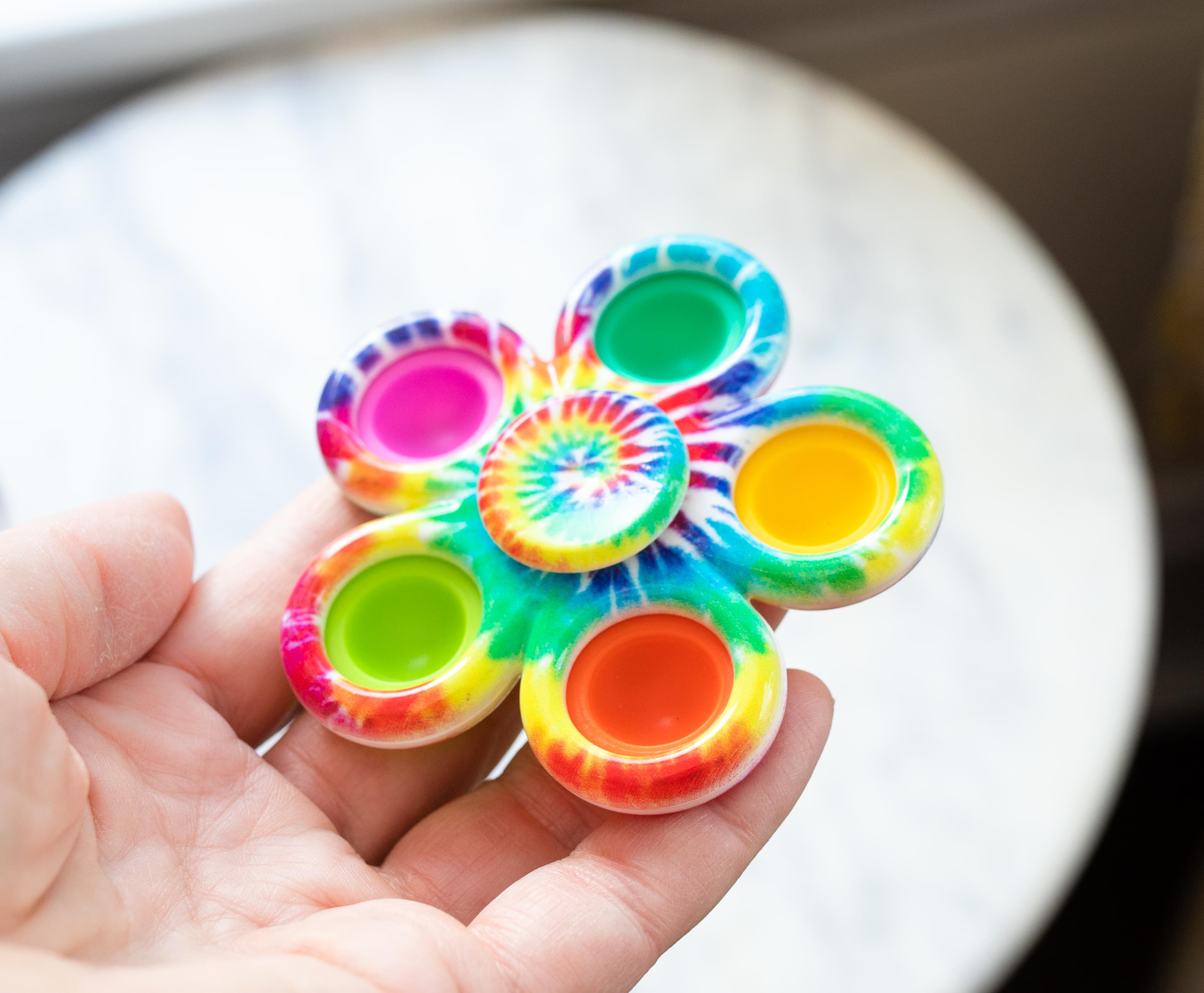 Use the spinner to watch it rotate or press the buttons to hear a satisfying "POP!" Alternating between each stimulate will keep boredom from settling in through hyperactive movement. With a little practice, expert "spinners" can even play with this fidget toy one-handed.