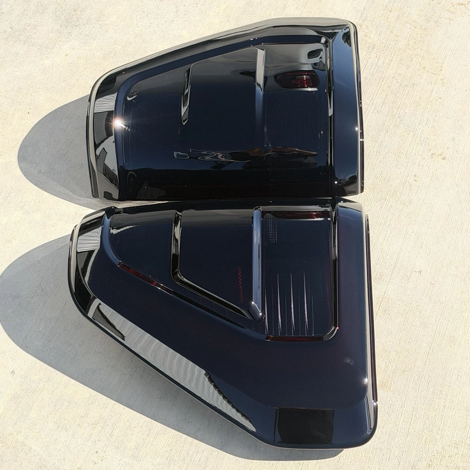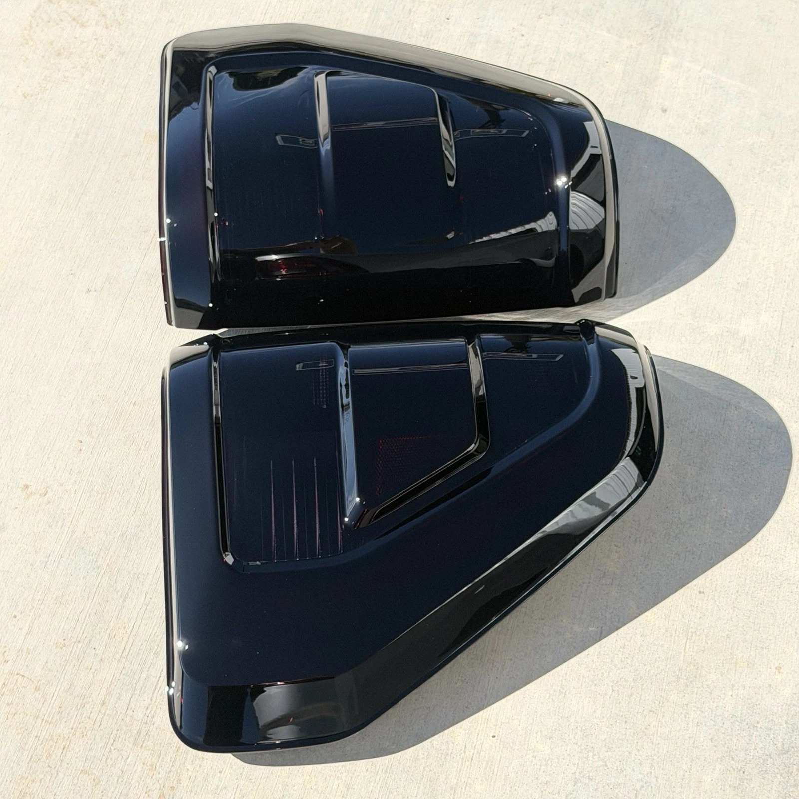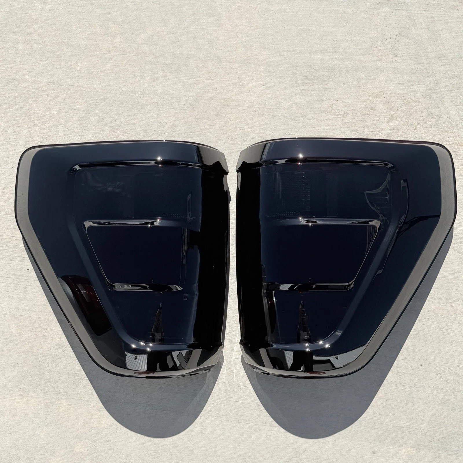21-23 F150 LED, W/Blis custom smoked tail light assemblies in the all Dark Shade. If you would like a different shade please check my website for more options or contact me PRIOR to purchasing to check availability. These have been professionally painted inside a dust free spray booth. They are painted with a transparent base coat, then finished with urethane UV resistant clear coat. The result is a truly professional long-lasting finish. They can be cared for the same way you would your vehicles paint, using the same detailing products and procedures. We use new and used lenses. They are completely sanded down to remove any imperfections before painting. Each set is freshly painted to order and arrives in pristine condition.