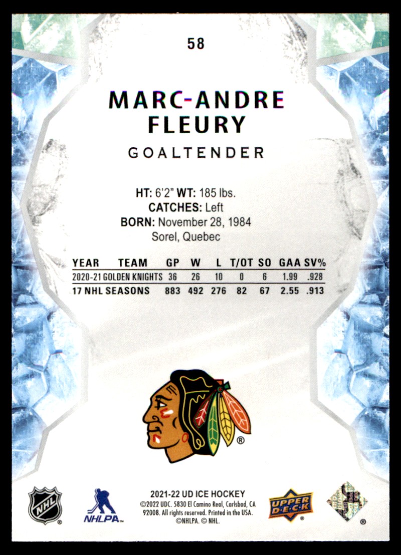 | 2021-22 Upper Deck Ice Marc-Andre Fleury #58 |
