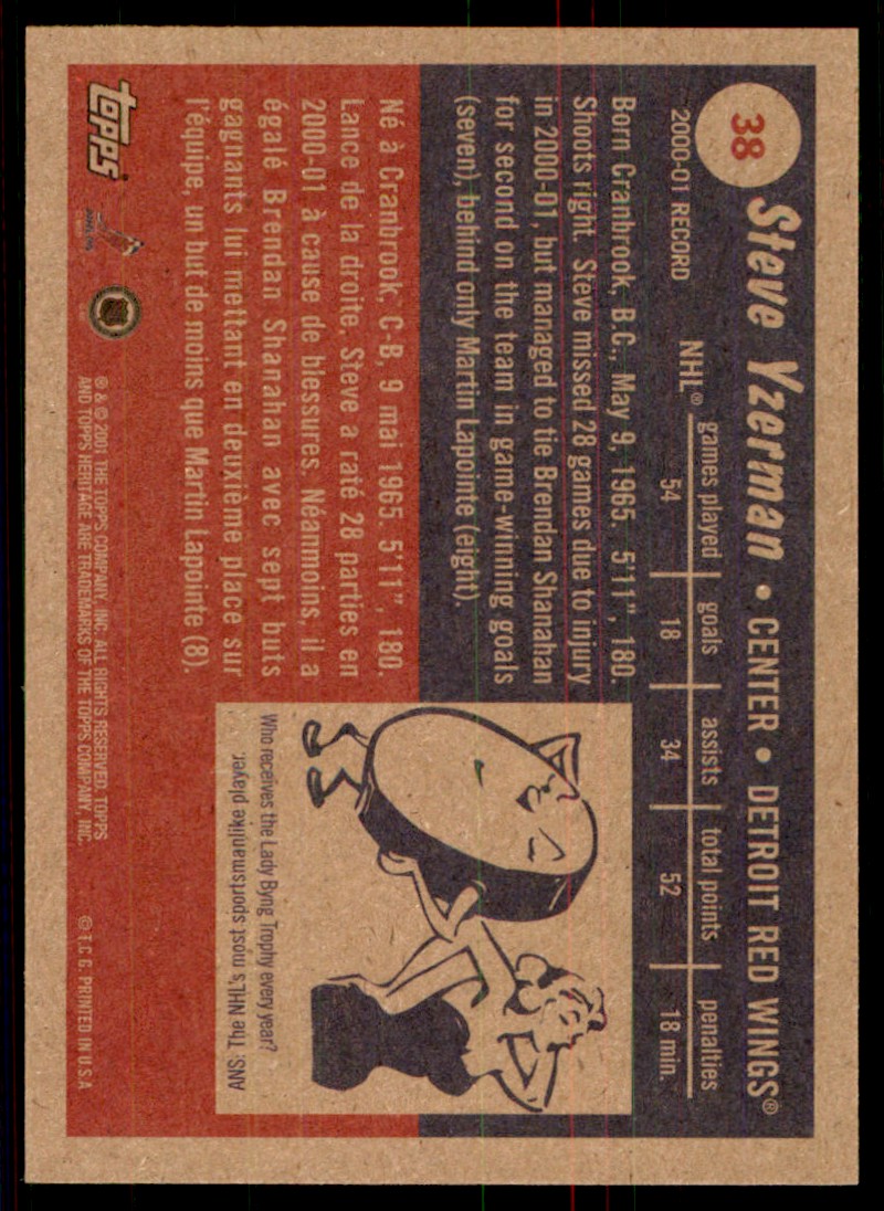 | 2001-02 Topps Heritage Steve Yzerman Detroit Red Wings #38 |