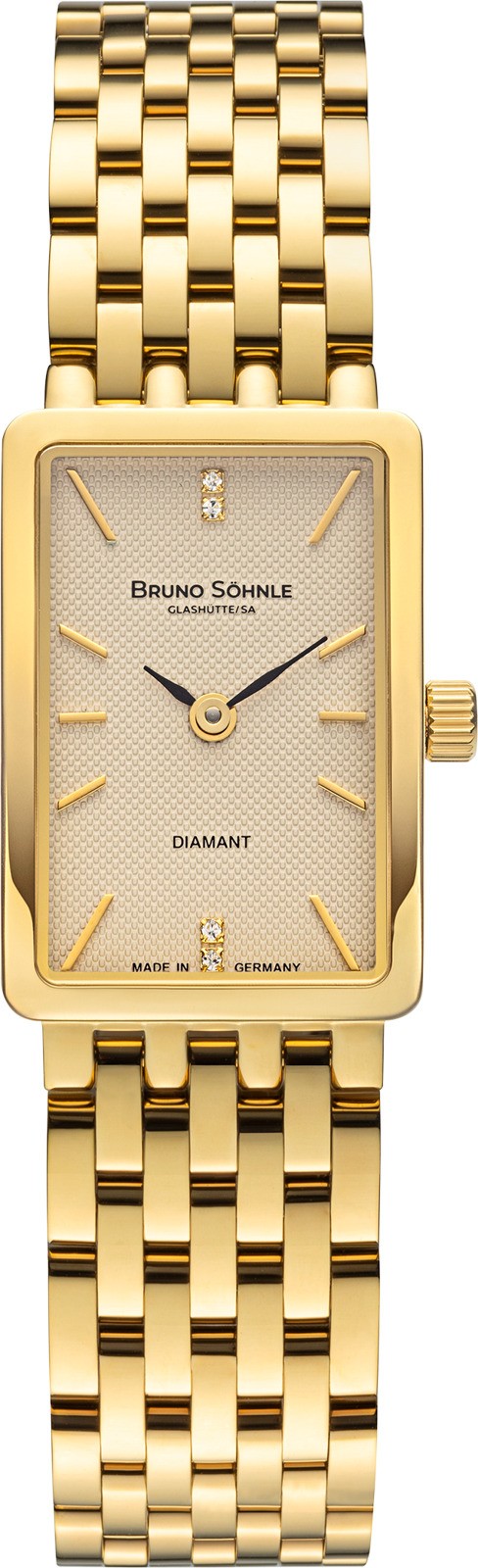 Diese stilvolle Damenuhr in Bicolor-Optik vereint höchste Präzision mit eleganter Ästhetik – ein edles Accessoire für jeden Tag oder ein besonderes Geschenk, mit dem Sie sich oder Ihren Liebsten eine Freude machen können. Im Inneren arbeitet ein zuverlässiges Quarzwerk in der Bruno Söhnle-Ausführung, basierend auf dem bewährten Ronda 1062 Kaliber, das für eine präzise Anzeige von Stunde und Minute sorgt.