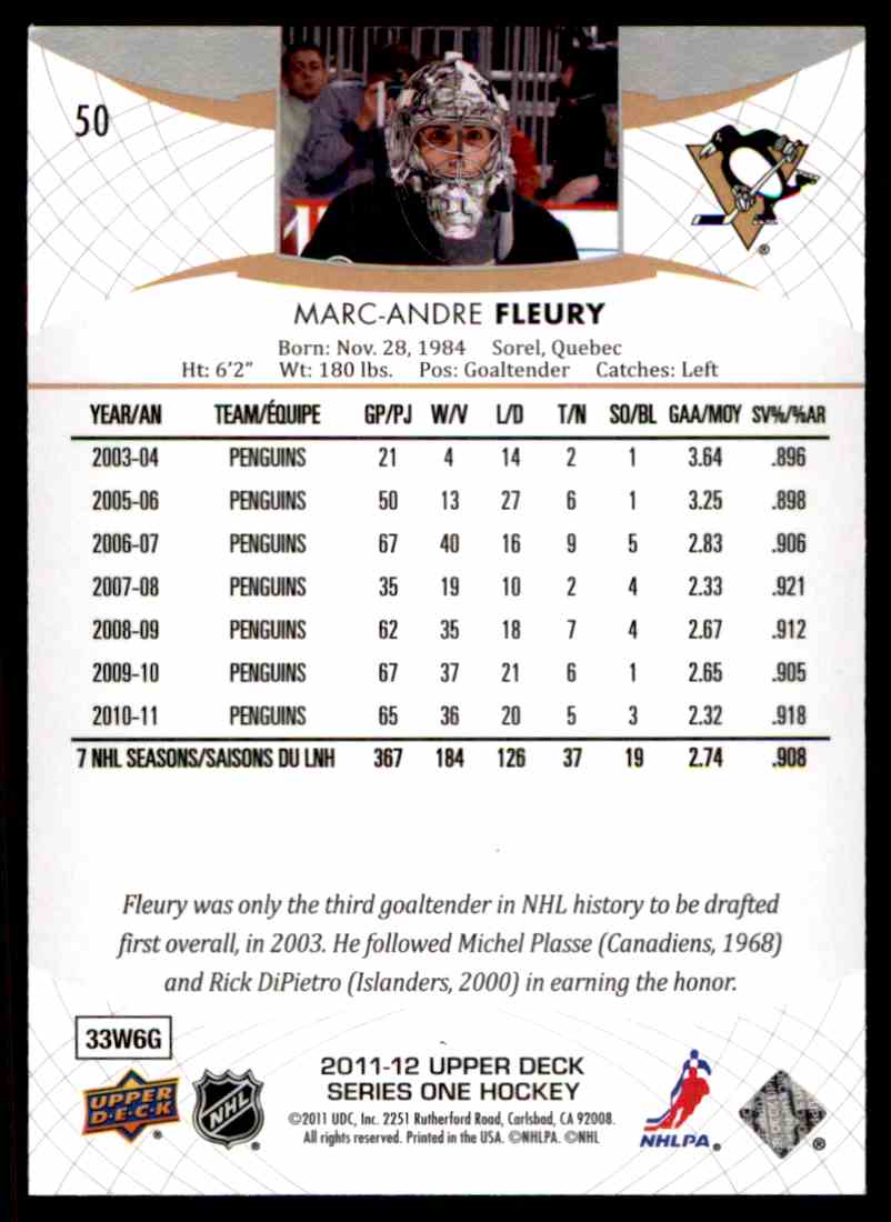 | 2011-12 Upper Deck Marc Andre Fleury #50 |