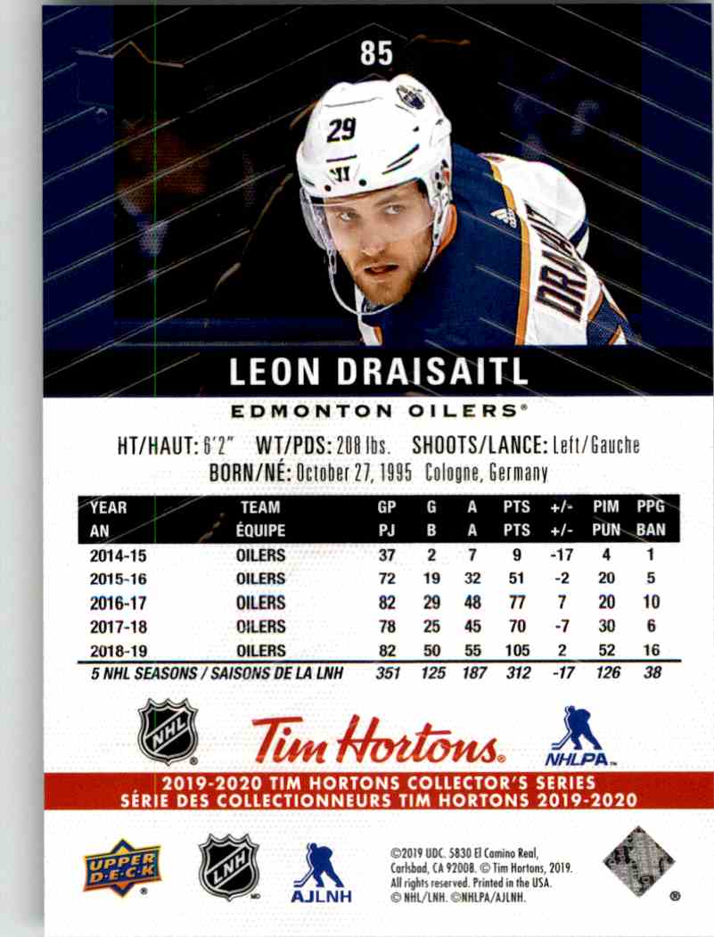 | 2019-20 Upper Deck Tim Hortons Leon Draisaitl #85 |