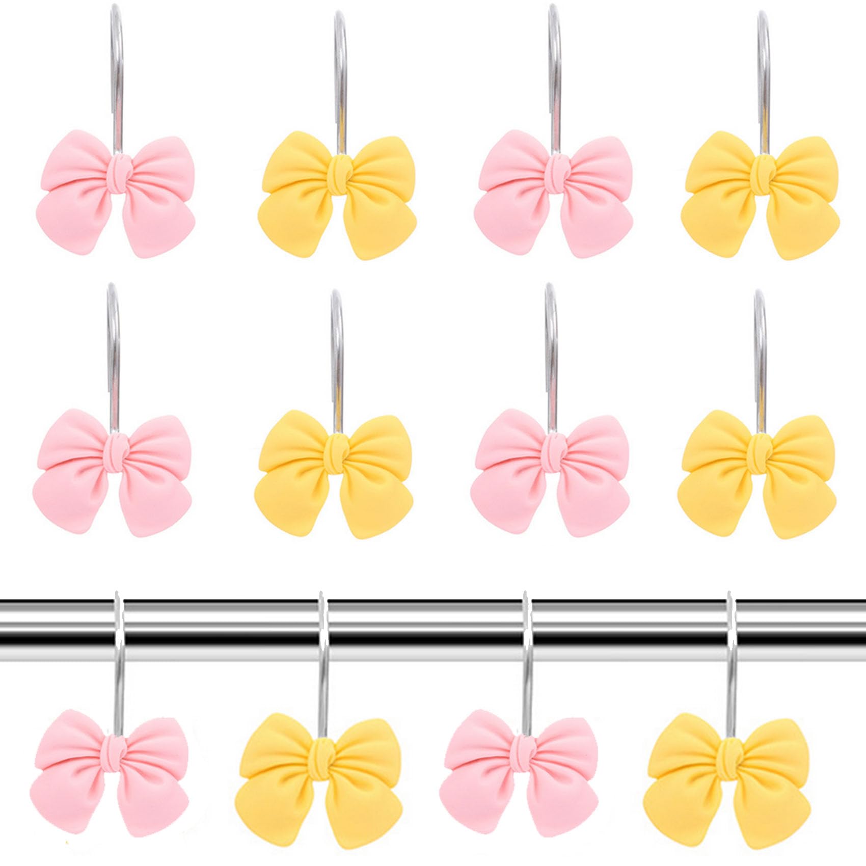 Material: Pink Shower curtain hooks are made of high-quality resin and stainless steel metal, sturdy and wear-resistant, waterproof and rust proof, with a maximum load capacity of 5kg.
