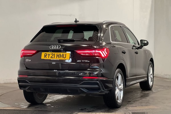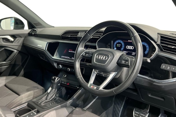 This 2021 Audi Q3 TFSIe S line offers excellent peace of mind with its MOT valid until August 2026 and a clear vehicle history check. This stylish SUV features a 1.4 litre petrol plug-in hybrid engine, meeting Euro 6 emissions standards. Inside, youll find Dual Zone Electronic Climate Control for personalised comfort, and the convenience of LED headlights with LED daytime running lights. Parking is made easier with rear parking sensors, and the Light and Rain Sensor automatically manages your headlights. Stay connected and entertained with the Audi Smartphone Interface, which includes wireless Apple CarPlay and Android Auto. The Q3 TFSIe S line stands out with its advanced plug-in hybrid technology, offering an efficient and flexible driving experience. The inclusion of wireless Apple CarPlay and Android Auto, alongside LED headlights and rear parking sensors, demonstrates a higher level of specification compared to many similar vehicles. This Audi Q3 is designed to provide a comfortable, connected, and reassuring drive for everyday use. Lifetime warranty available on this car, plus a £1,000 finance contribution when you part exchange. Voted UK Car Supermarket of the Year two years running, we offer 0% finance, part exchange, and lifetime warranties across our entire range. Every car is thoroughly inspected before sale and comes with a full history check, so you can buy with complete peace of mind. Buy with confidence on our best finance rates. Proud winners of the CarGurus Top-Rated Dealer 2022 and the MotoNovo Extra Mile Award. .19in Alloy Wheels - 7.0J 5-Twin-Spoke - Dynamic Design, 2 USB-C Ports with Charge and Data Functions, 3-Spoke Leather Multi-Function Steering Wheel - S Badging and Grips in Perforated Leather with Contrast Stitching, 6 Passive Loud Speakers, 6-Airbag System, Adjustable Rear Seat Bench-Backrest with Centre Armrest and Cupholder, Aluminium Look Interior Elements, Aluminium Roof Rails, Aluminium Window Trims, Anti Theft Locking Wheel Bolts, Anti-Theft Alarm, Audi Connect Infotainment Services Plus (3 Year Subscription From New), Audi Connect Safety and Service - e-call, Audi Drive Select, Audi Pre-Sense Basic, Audi Pre-Sense Front with Pedestrian and Cyclist Recognition, Audi Smartphone Interface includes Wireless Apple CarPlay, Audi Virtual Cockpit - 10.25in Display, Auto Dimming and Frameless Rear View Mirror, B and C-Pillar Trim in High-Gloss Black, Bluetooth Interface, Body Coloured Door Mirrors, Bumpers in Full Body Colour Paint Finish, Camera-Based Traffic Sign Recognition, Child Locks - Manual, Cloth Headlining in Black, Cruise Control System with Speed Limiter, DAB Digital Radio, Detail in Dashboard Around the MMI Touch Colour Display in Glass Look - Black with Surround in Aluminium Look, Domestic Charging Cable - 3 Pin 10 Amp, Door Mirrors - Electrically Folding - Adjustable and Heated with Integrated LED Side Indicators and Kerb-view Function for Passenger Side, Dual-Zone Electronic Climate Control, Electric Windows - Front, Electromechanical Parking Brake, ESC - Electronic Stabilisation Control inc ABS - ASR and EDL, First Aid Kit and Warning Triangle, Frame of Front Side Air Inlets in Platinum Grey - Matt, Front and Rear Floor Mats in Black with Contrast Stitching in Rock Grey, Front Centre Armrest, Front Spoiler Blade in Platinum Grey - Matt, Gear Knob in Perforated Leather, Grille Surround in Silver - Chrome, Grille Vertical Bars in Aluminium Silver - Matt, Hill Descent Control, Hill Hold Assist, Illuminated Door Sill Trims with S Logo, Inlays - Matt Brushed Aluminium - Dark, Interior Lighting, ISOFIX Child Seat Mounting for the Front Passenger Seat with Front Passenger Airbag Deactivation and ISOFIX Child Seat Mounting and Top Tether for the Outer Rear Seats, Lane Departure Warning, Leatherette Door Armrests, LED Headlights with LED Daytime Running Lights, Light and Rain Sensor, Luggage Compartment Sill Protection in Stainless Steel, Manually Adjustable Front Seats, MMI Navigation Plus with High Resolution 10.1in Touchscreen Colour Display, Myt