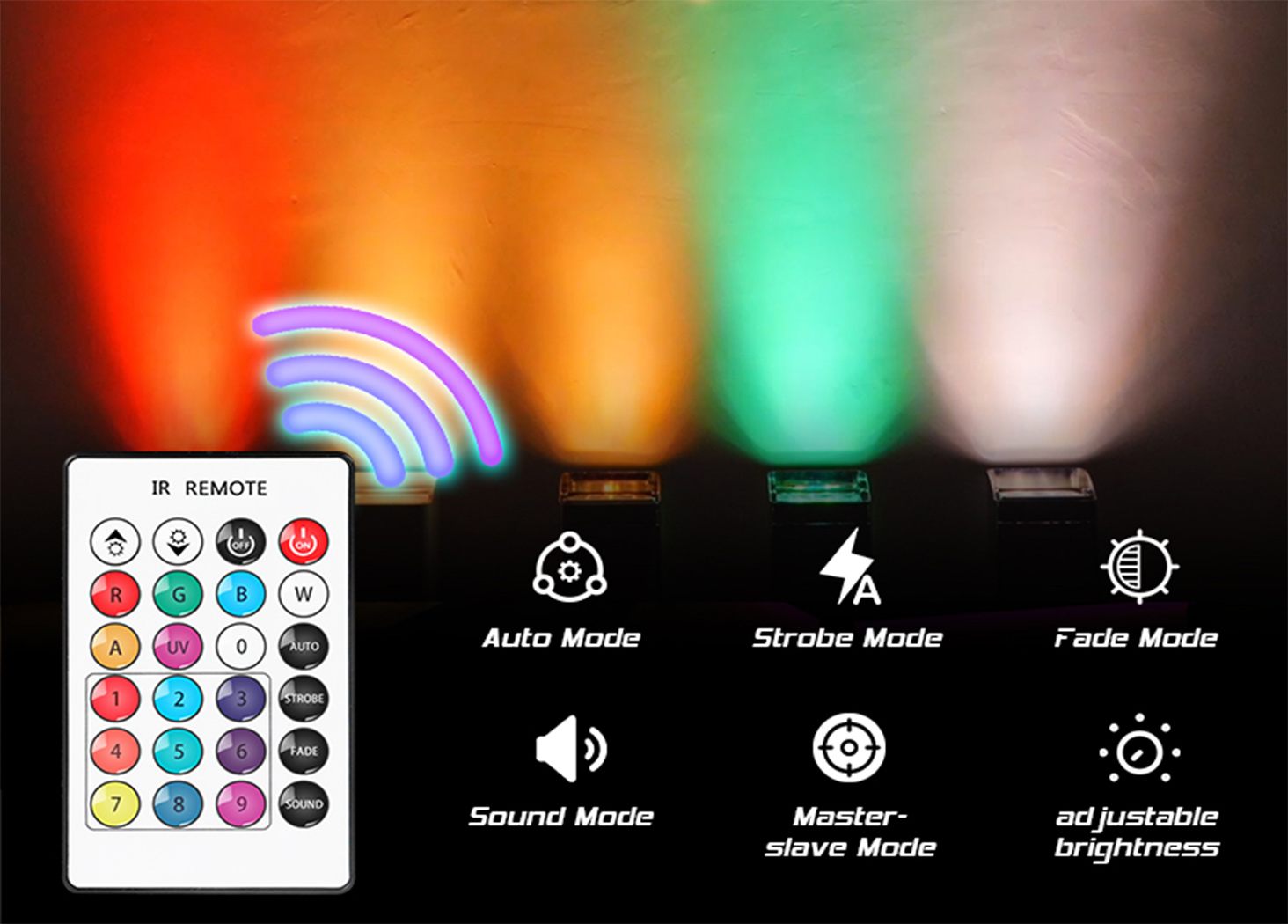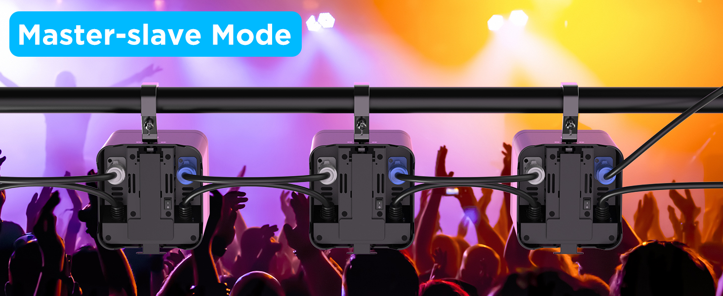 5 Control Modes: DMX512, self-propelled, sound control, master-slave, remote control