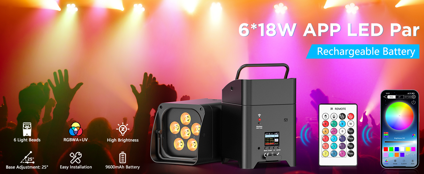 108W Wireless RGBWA+UV 6 in 1 Par Light APP & WiFi + Remote DMX Control Wash Stage DJ UP Light