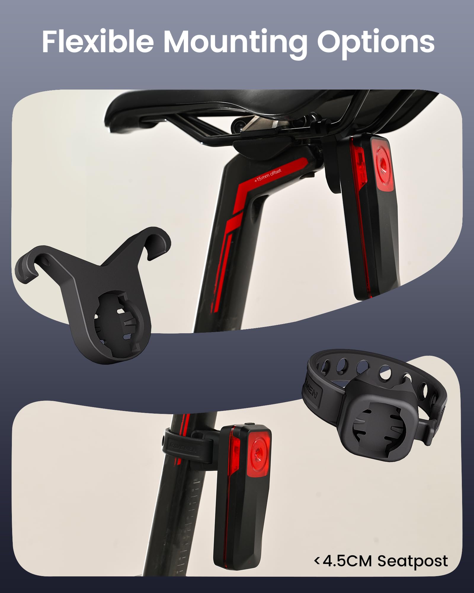 RAVEMEN NT201 Fanale posteriore LED radar per bici, 80 lumen, Flash freno automatico, ANT+Caricamento...