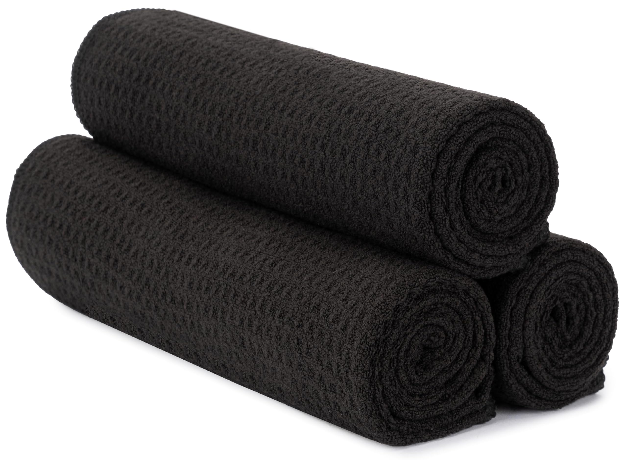 S&T INC. Microfiber Gym Towels, Yoga Towel for Home 3 Pack, Honeycomb Black