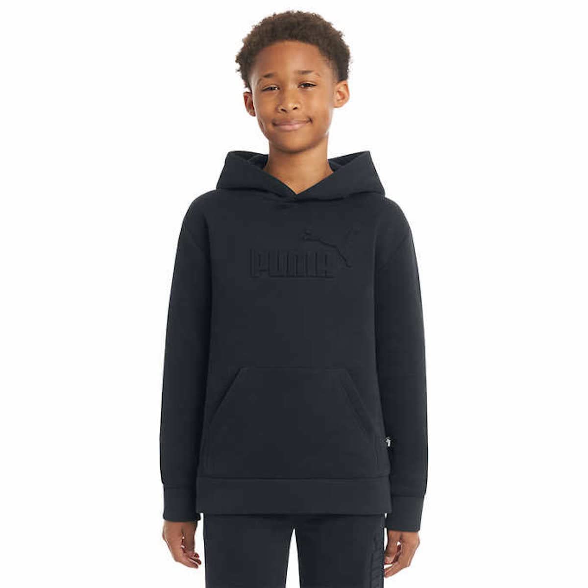 PUMA Youth Boy's Fleece Logo Hoodie Sweatshirt (X-Small(5/6), Black)