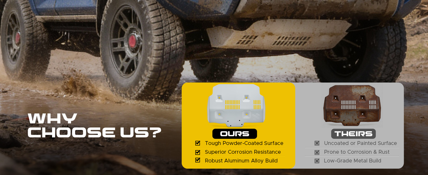 Corrosion Can't Touch This: Our powder-coated surface passes 72-hour salt spray tests, providing superior corrosion resistance & lasting strength. It keeps your underbody guard looking new and performing reliably in wet, salty, or humid environments