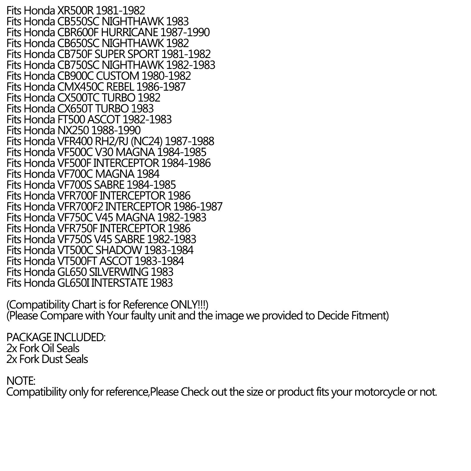 Front Fork Oil Seal Dust Cap Repair Rebuild Kit For Honda CBR250 CR85R CRF150 VT500 GL650 CB750