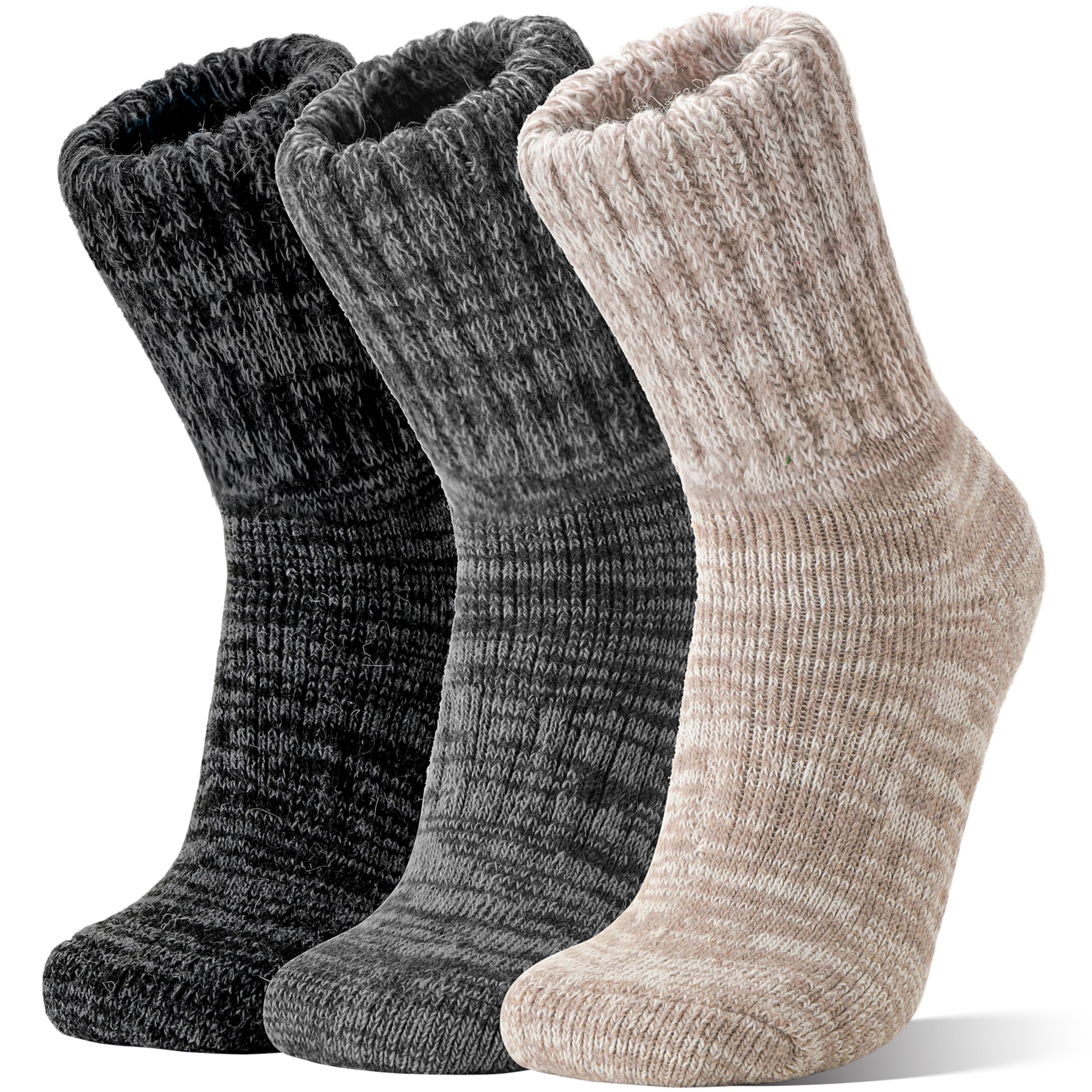 Merino Wool Thermal Boot Socks for Women Men Winter Warm Cozy Thick Hiking Socks 3 Pairs Christmas Stocking Stuffers (Grey/Black/Light Khaki,L)