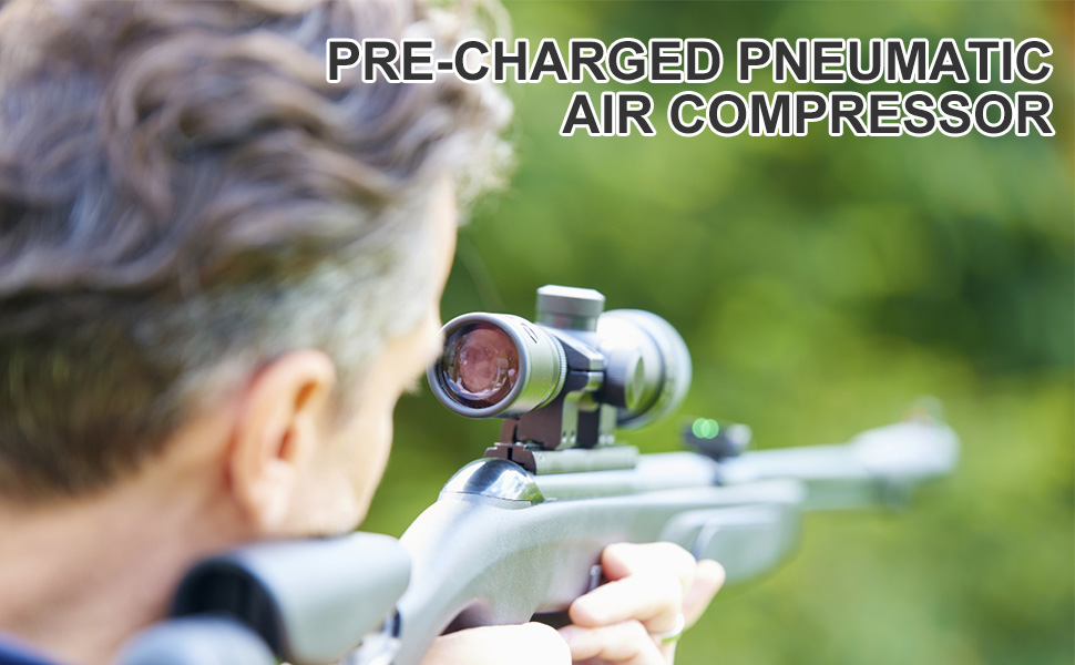 DC12V PCP AIR COMPRESSOR: The air gun air compressor itself uses DC12V power supply. Our package is equipped with a professional transformer converter and 5.1FT thick automobile battery clips. The transformer is used to convert AC110V/220V into DC12V, and the thick battery clip is used to directly connect the automobile 12V power supply to use the air gun air compressor pump. This air compressor can be placed in the car at any time to inflate the air gun or cylinder.