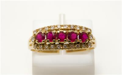 This lovely Ruby ring is set with 5 round cut Rubies & 22 brilliant cut Diamonds (total Diamond weight 0.15ct)