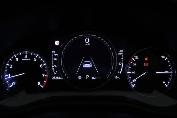 ..360 View Monitor, 7'' TFT Colour driver instrument panel display, 8.8'' Colour centre touch screen display with Mazda Connect infotainment, Adaptive cruise control (Mazda radar cruise control) features stop and go, Apple car play/Android Auto, Blind spot monitoring with rear cross traffic alert, Cruising Traffic Support, Drive mode selector, Driver attention alert system, Driver monitoring system, E-call with GPS, Emergency stop signalling system, Engine start/stop button, Front and rear parking sensors, Front Cross Traffic Alert, Integrated bluetooth, Integrated Mazda navigation system, Intelligent speed assist, Lane keep assist system (LAS) with Lane departure warning system (LDWS), PAS, Power lift gate, Service indicator, Trip computer, Window projected colour active driving display (head up display) with traffic sign recognition, i-stop, 2 USB charging ports, Bose surround sound system with 12 Speaker, Bose center point, Bass match and audio pilot technology, DAB Digital radio, Multimedia Commander including separate volume dial, Steering wheel mounted audio/bluetooth controls, Adaptive LED Headlights, Auto dimming driver's door mirror, B-pillar and C-pillar garnishes in piano black finish, Body coloured, electrically adjustable, heated auto power folding door mirrors with integrated indicators, Coming/leaving home lighting function, Door mirrors with tilt-down function when reversing, Dual chrome exhaust, Dusk sensing headlights, Electric front/rear windows with one touch auto up/down, Frameless auto dimming interior rear view mirror, Front grille in piano black finish, Front kodo turn signal, High beam assist, Piano black rear roof spoiler, Power tilt/slide sunroof, Privacy glass (rear side windows and rear screen), Rain sensing front wipers with adjustable speed and intermittent wipe, Rear fog lights, Rear wiper, Signature front LED daytime running lights, Signature LED rear combination lights with LED rear turn lights, 60/40 split fold down rear seats, Chrome centre bezel steering wheel, Chrome horn pad ring, Dashboard, door cards and front centre armrest in rich brown leather, Driver and front passenger visors with covered vanity mirror and driver ticket holder, Driver seat memory function, Driver's seat, power tilt, slide, recline, height and lumbar adjustment, Driver, Front passenger and two rear grab handles with coathooks, Dual zone climate control air conditioning with rear air vents, Electrical power outlet, Folding rear centre armrest