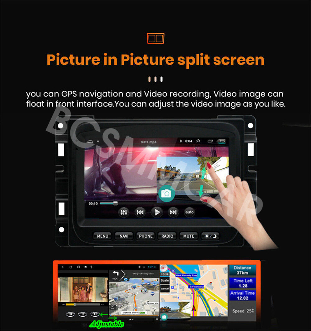 Split screen feature enables you to use two applications at the same time. For example running Navigation with Music Player or Radio with Navigation at the same time. Optimum convenience for both the driver and passengers.