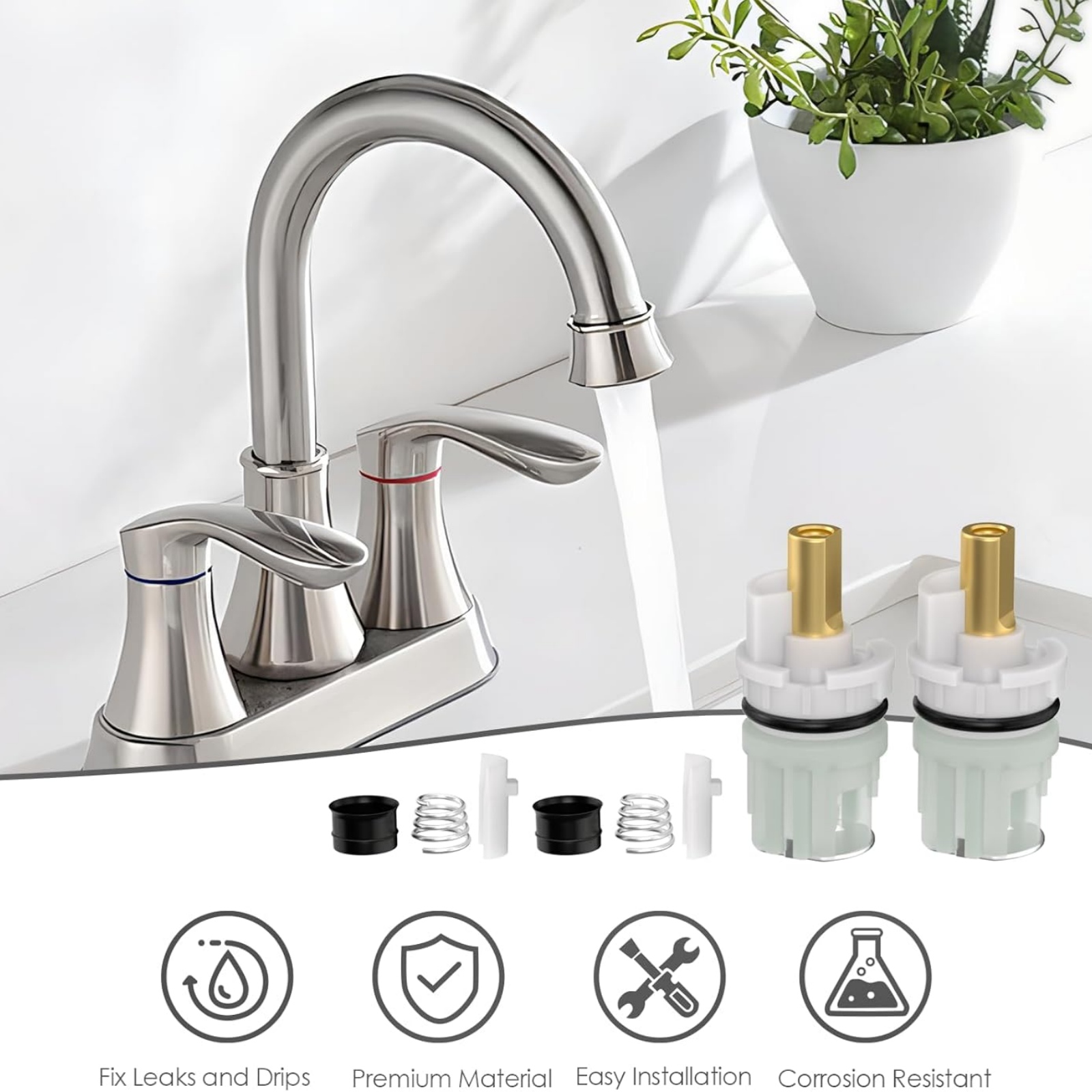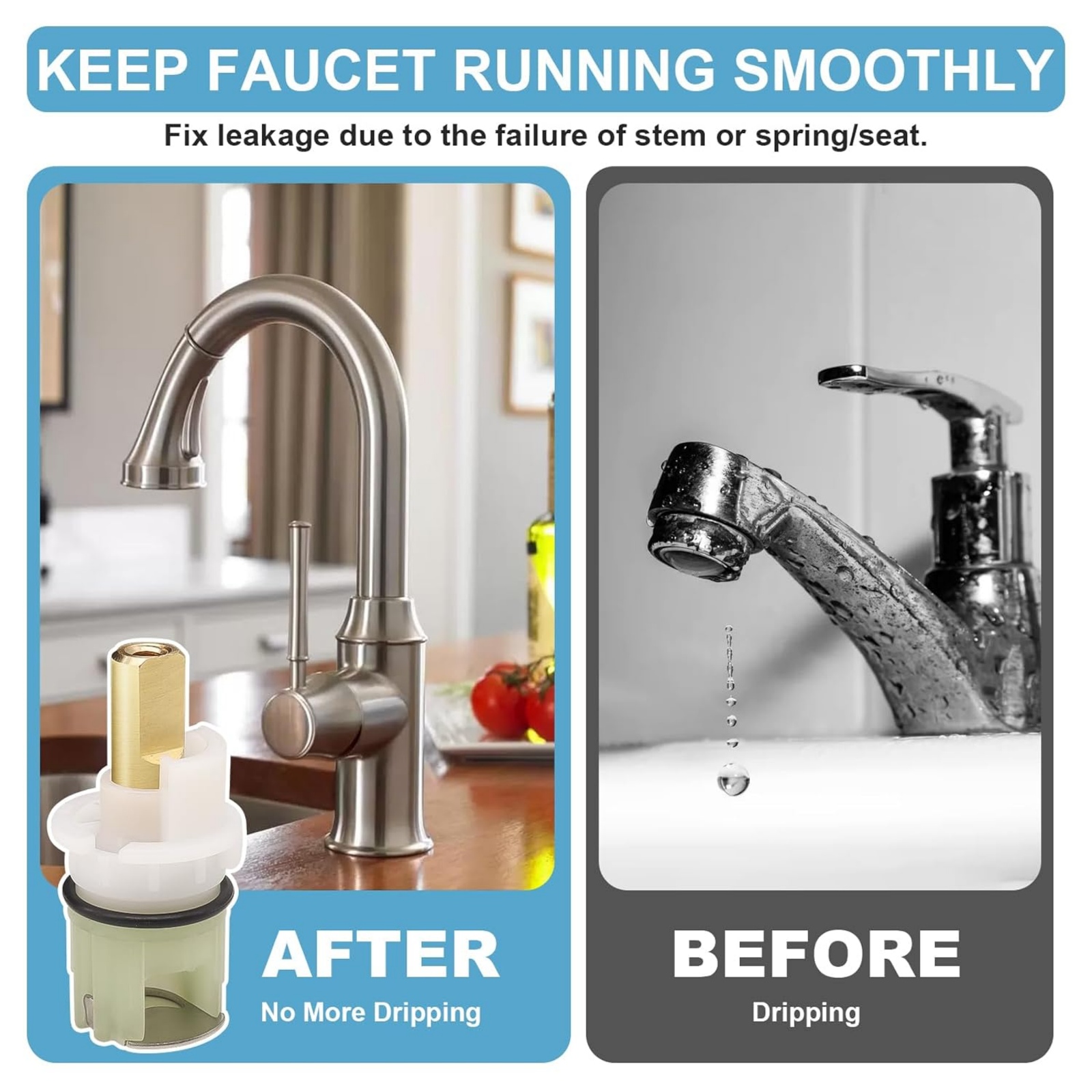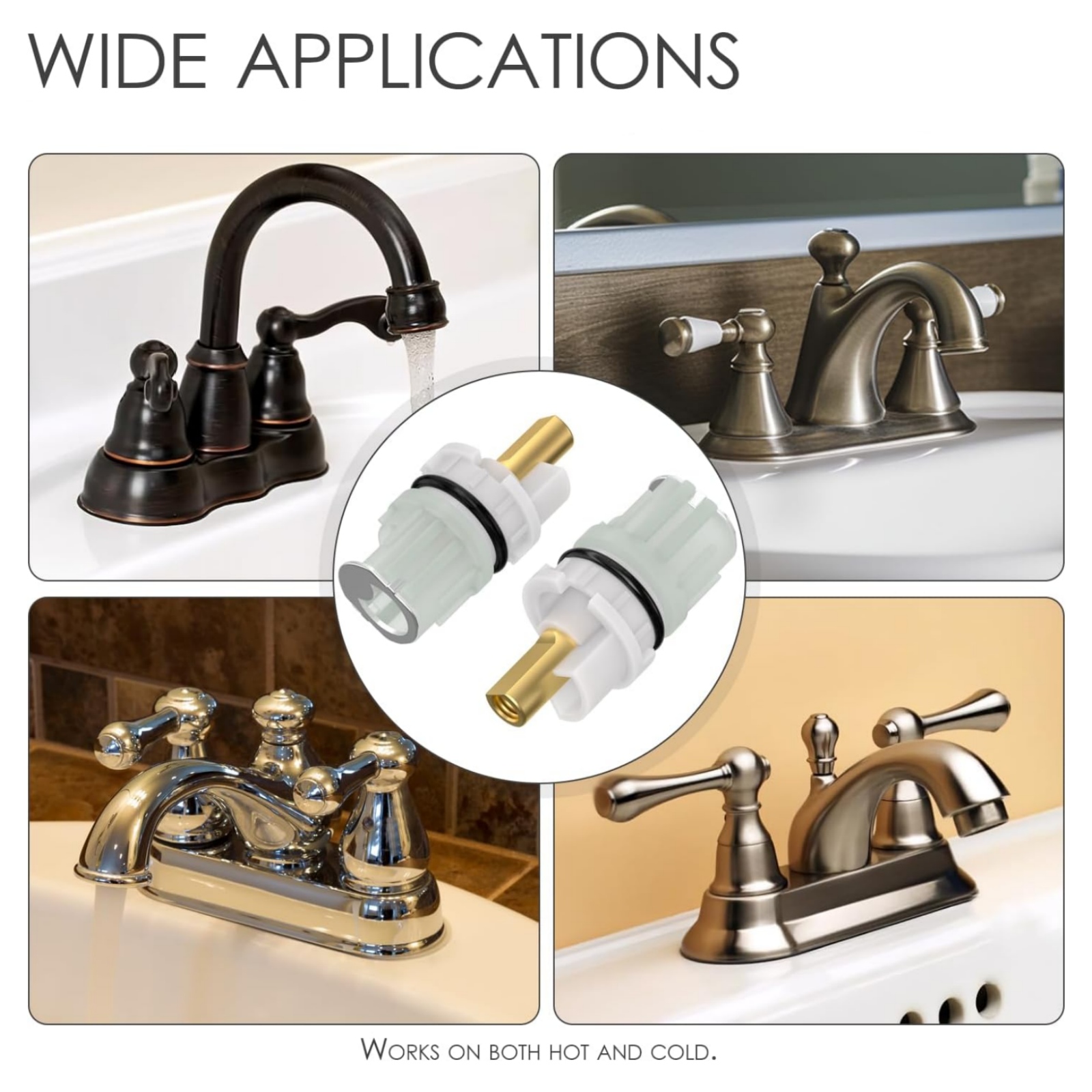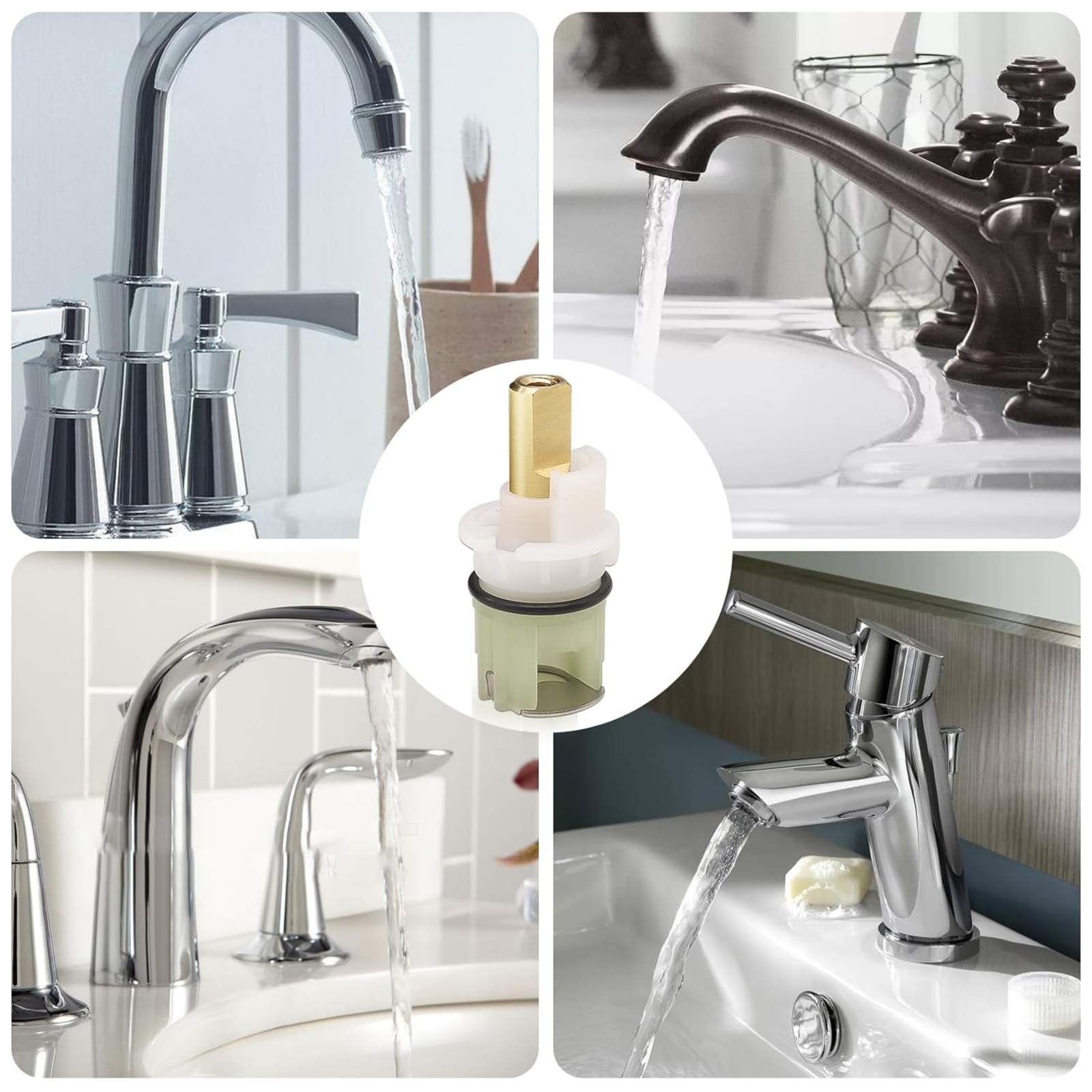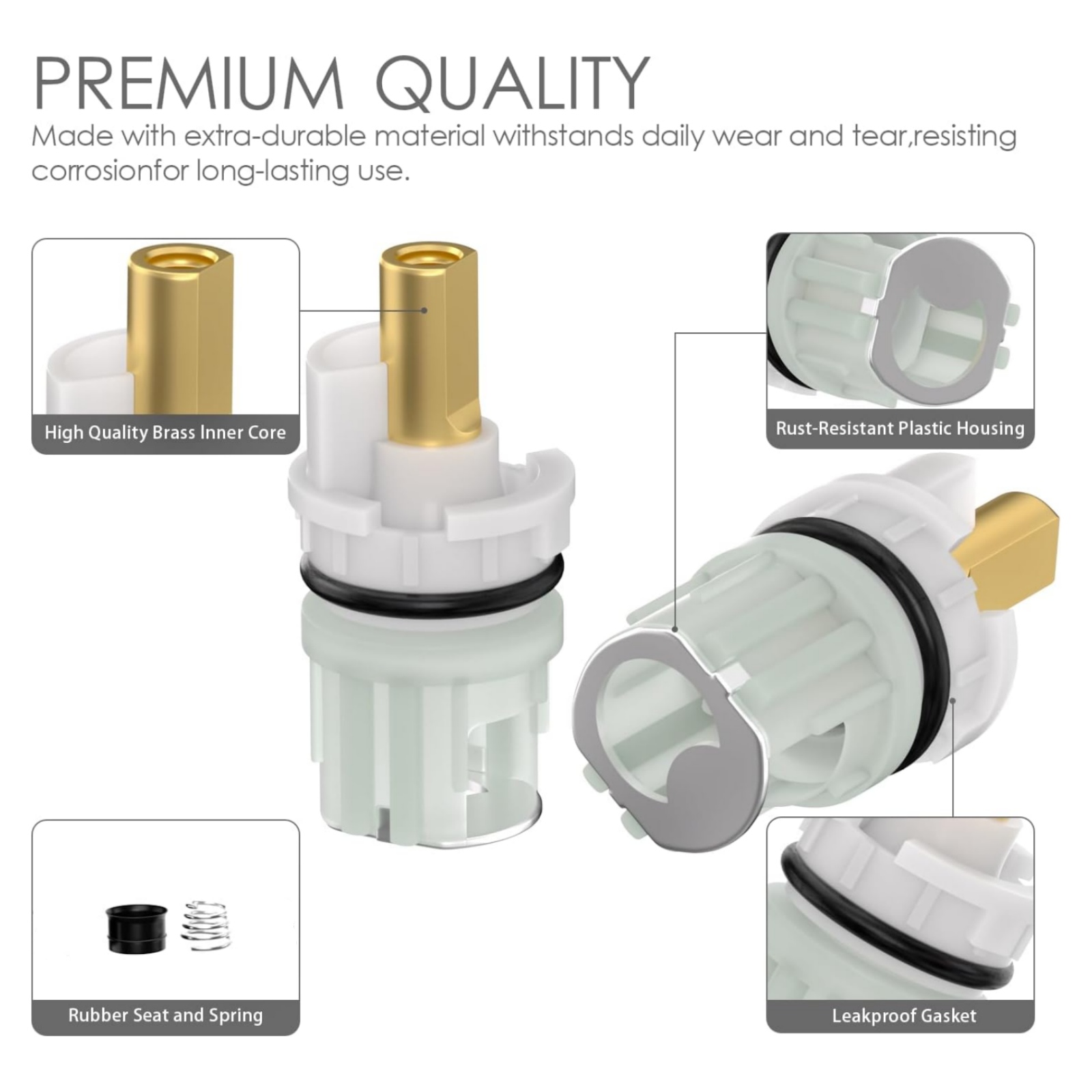 2. Premium Quality: Double-Handle Universal Stems Cartridges Are Made With Brass Stem, Sturdy And Not Easy To Deform. Easy To Use And Keep A Faucet Running Smoothly.