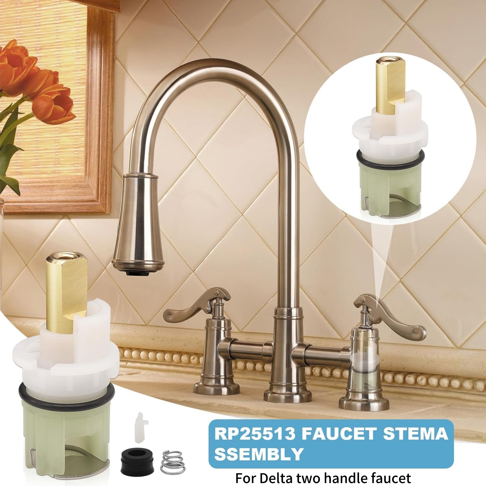1. Upgraded RP25513 Faucet Stem Assembly: RP25513 Faucet Stem Kit Can Be Used For Most Delta Two Handle Bathroom / Kitchen / Sink / Bathtub Faucet. This For Delta Faucet Stem Repair Kit Is Designed To Fix Leakage Due To The Failure Of Stem, Spring Or Seat. Works On Both Hot And Cold.