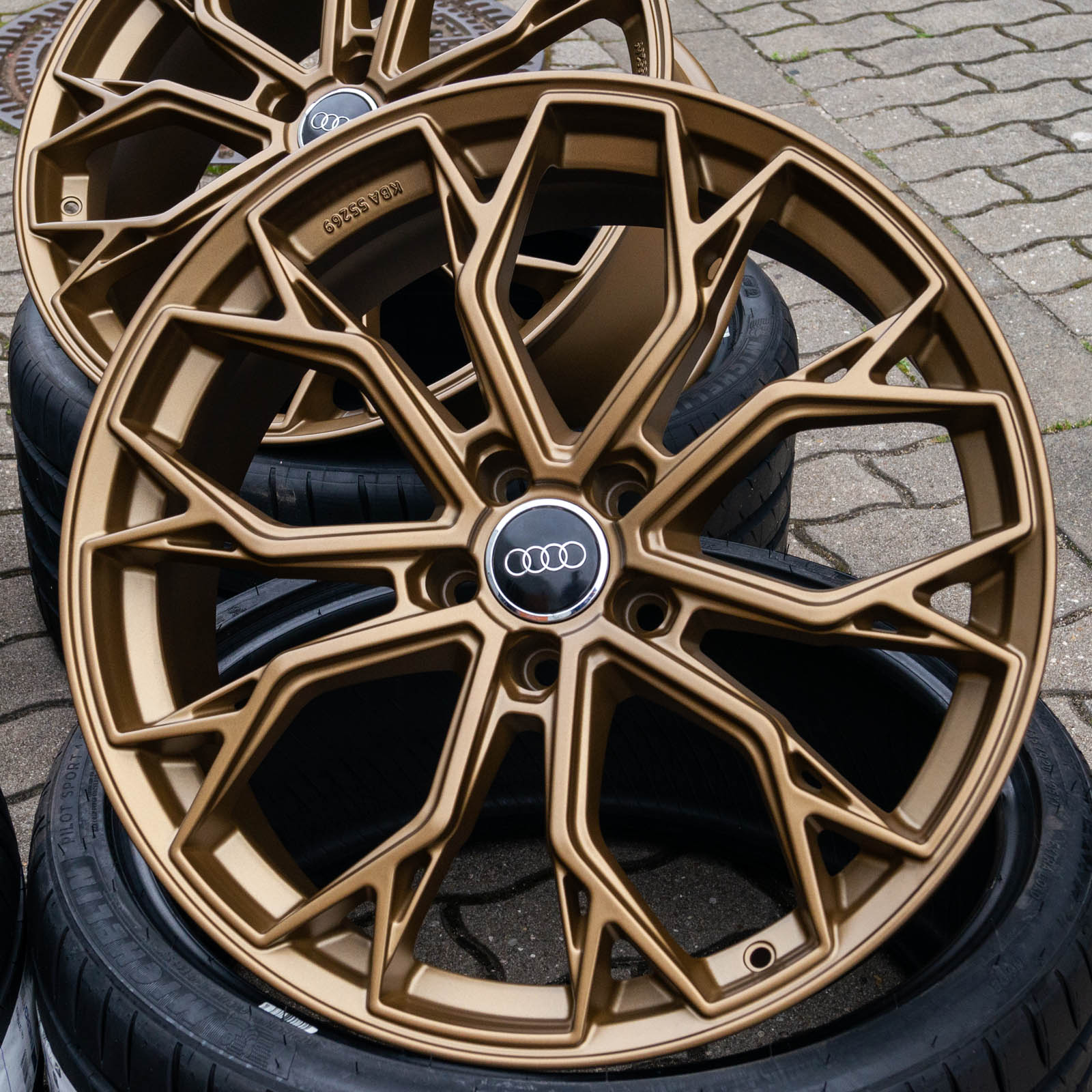 4x neue Alufelgen 19 Zoll ohne Reifen - RW03 8,5Jx19 ET45 5x112 Bronze Matt - 1x ABE/Gutachten - 4x Nabendeckel Raederwerk (Audi Deckel nicht enthalten)