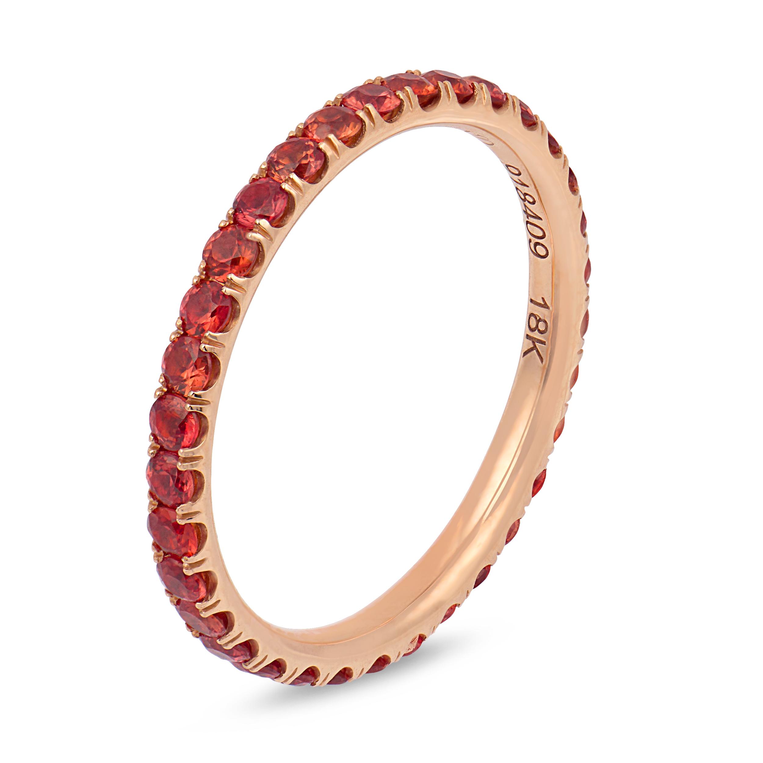 Crafted in glowing 18k rose gold and signed by Lugano, the slender band enhances the rich orange tones of the garnets while maintaining a refined and elegant silhouette. The warm rose gold perfectly complements the vivid gemstones, creating a harmonious and eye-catching piece. Delicate yet luxurious, this eternity band is ideal for stacking or wearing alone as a colorful modern statement.