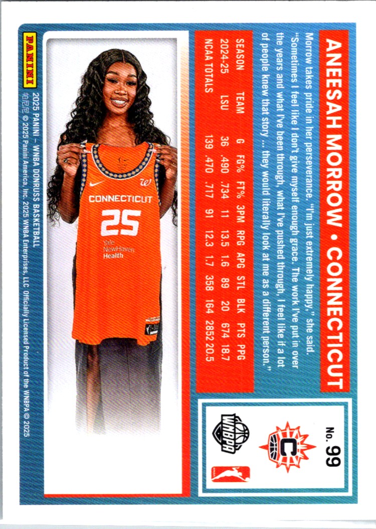 2025-26 Donruss WNBA Rated Rookies Aneesah Morrow Rookie Connecticut Sun #99
