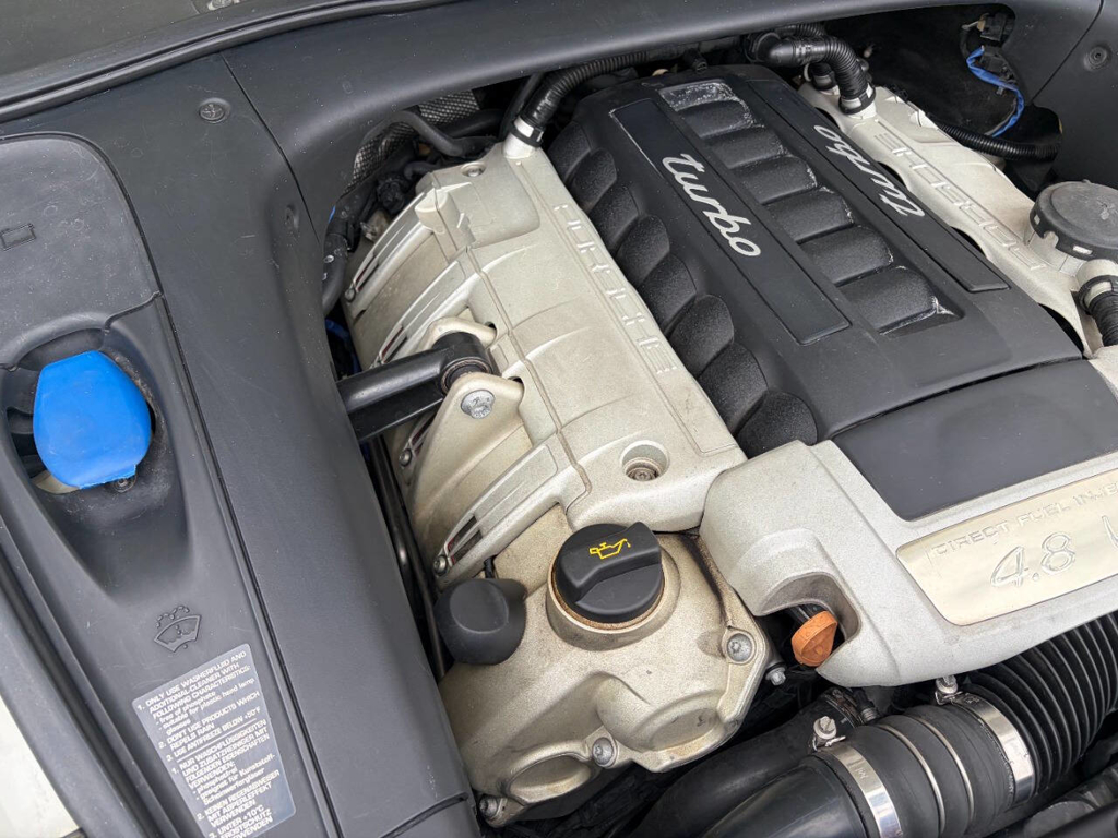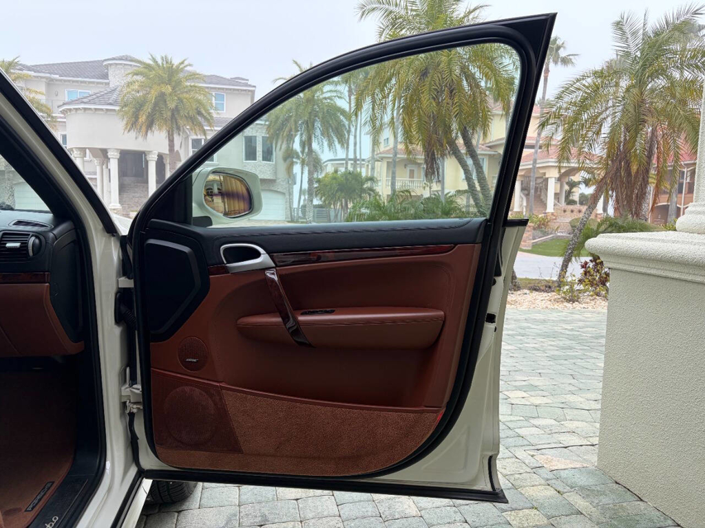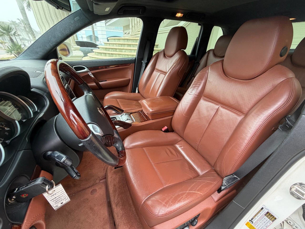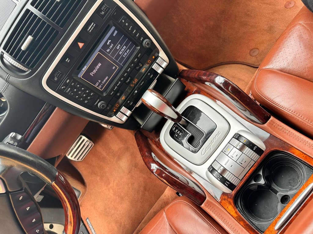 This particular Cayenne Turbo is made even more compelling by its presentation and mileage: it has covered only 77,225 miles since new, and it’s finished in a beautiful White exterior over a Brown leather interior with wood grain accents—a spec that suits the Cayenne Turbo’s dual personality of high performance and luxury. Inside, Porsche’s cockpit-forward layout brings that unmistakable brand feel with the 911-style gauge cluster, and this example is equipped with the comfort and convenience features enthusiasts actually want in a Turbo: front power adjustable seats with heating and driver memory settings, dual-zone climate control, and a power sunroof to bring light into the cabin. For audio, it’s fitted with an AM/FM radio paired with Bose sound—an ideal match for long highway runs or everyday use—while the power liftgate adds the kind of daily practicality that makes the Cayenne so easy to live with.