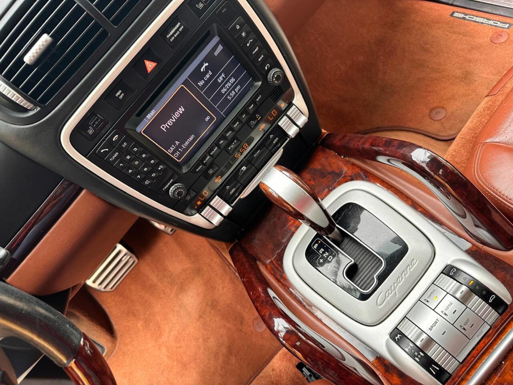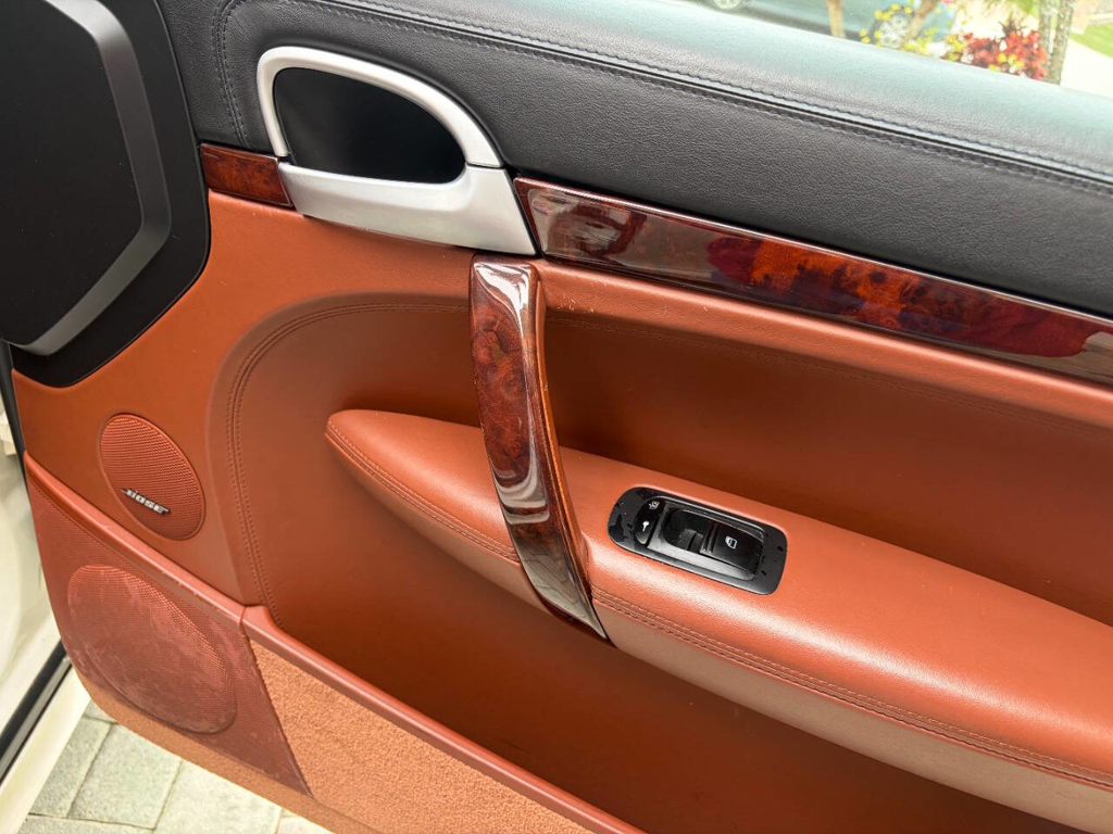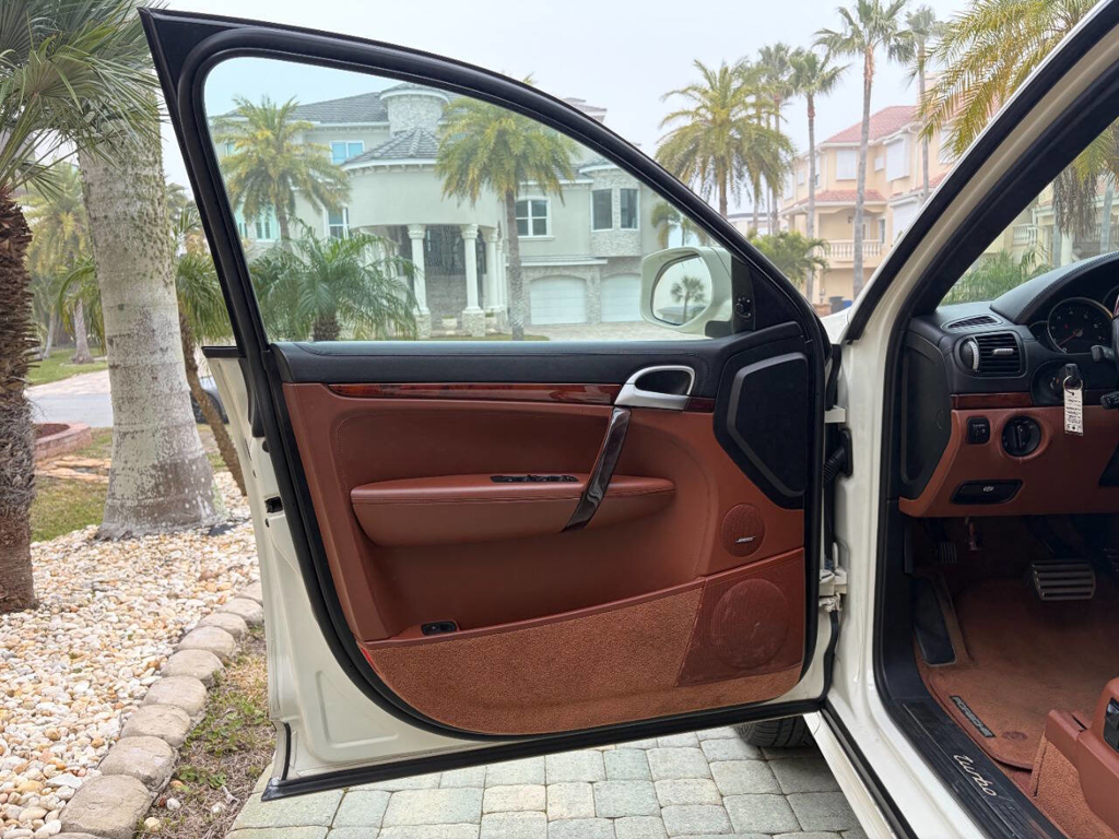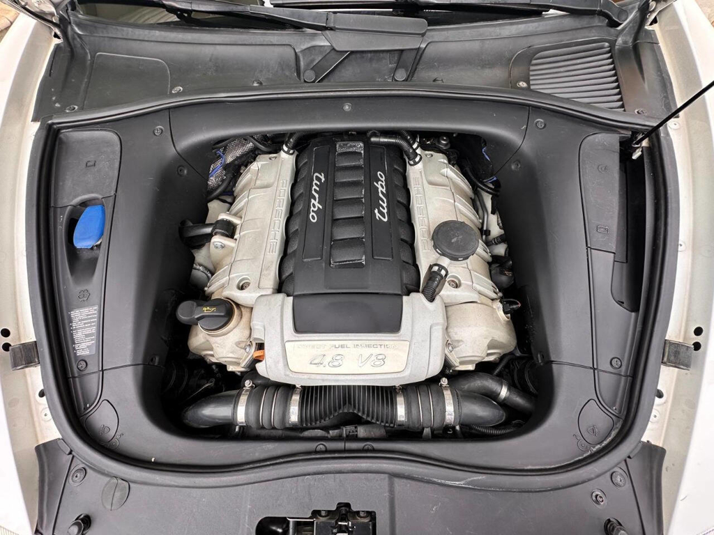 This particular Cayenne Turbo is made even more compelling by its presentation and mileage: it has covered only 77,225 miles since new, and it’s finished in a beautiful White exterior over a Brown leather interior with wood grain accents—a spec that suits the Cayenne Turbo’s dual personality of high performance and luxury. Inside, Porsche’s cockpit-forward layout brings that unmistakable brand feel with the 911-style gauge cluster, and this example is equipped with the comfort and convenience features enthusiasts actually want in a Turbo: front power adjustable seats with heating and driver memory settings, dual-zone climate control, and a power sunroof to bring light into the cabin. For audio, it’s fitted with an AM/FM radio paired with Bose sound—an ideal match for long highway runs or everyday use—while the power liftgate adds the kind of daily practicality that makes the Cayenne so easy to live with.
