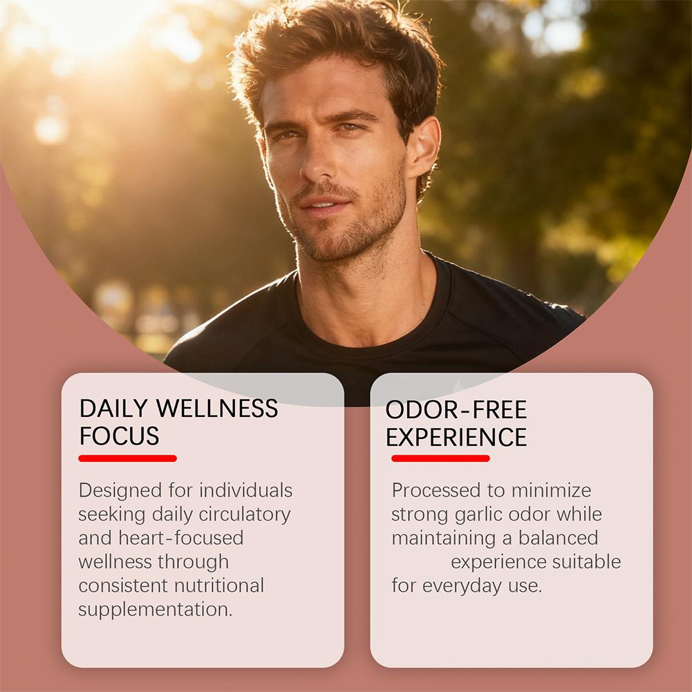 1. Garlic extract softgels help support cardiovascular health, promote normal daily circulatory function, and provide comprehensive protection for the heart.
