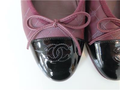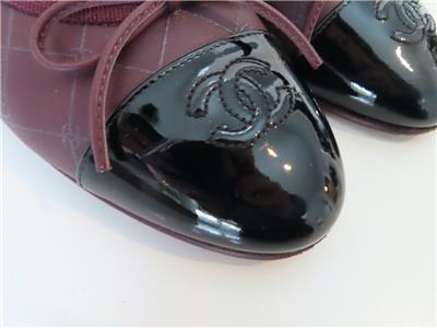 - Features: Diamond Stitch with Logo Embroidery, Black Patent Cap Toe with Bow & Interlocking CC Embroidery