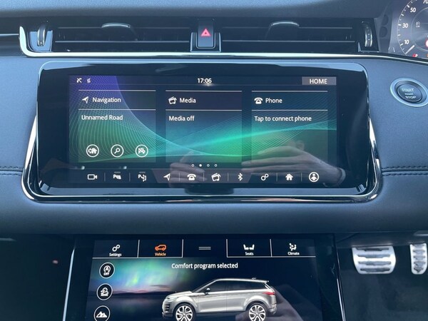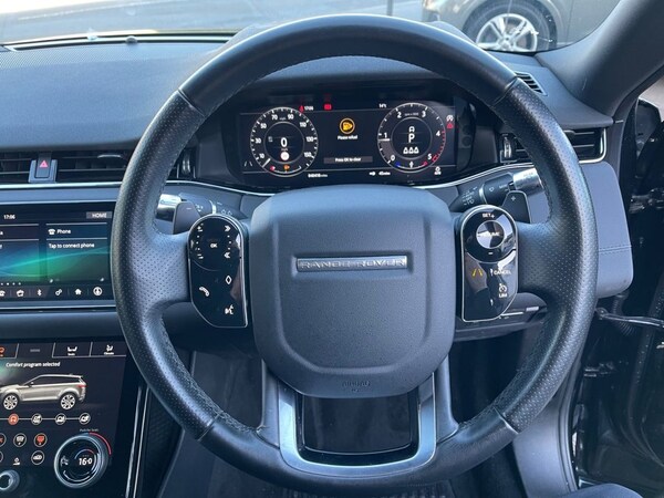 . ., 14-way - Heated Electric Memory Front Seats, 20in Alloy Wheels - 5 Split-Spoke - Style 5079 - Gloss Sparkle Silver, 360 Degree Parking Aid, 40-20-40 Split Fold Rear Seat, ABS - Anti Lock Braking System, ATPC - All Terrain Progress Control, Airbags - Driver Knee, Airbags - Front - Driver and Front Passenger, All Season Tyres, Ambient Interior Lighting, Android Auto, Apple CarPlay, Auto-Dimming Interior Rear View Mirror, Auto-Dimming Power Fold - Heated Door Mirrors with Memory and Approach Lights, Automatic Headlight Levelling, Automatic Headlights, Autonomous Emergency Braking, Black Gearshift Paddles, Bluetooth Connectivity, Body Coloured Roof, Brake Pad Wear Indicator, Bright Metal Pedals, Carpet Mats, Chrome Treadplates, Clear Exit Monitor, Cruise Control and Speed Limiter, Customer Configurable Autolock, D150 Badge, DAB - Digital Audio Broadcast, DSC - Dynamic Stability Control, Driver Condition Monitor, EBA - Emergency Brake Assist, EBD - Electronic Brake-Force Distribution, EPAS - Electronic Power Assisted Steering, ETC - Electronic Traction Control, Efficient Driveline, Electric Parking Brake, Electric Windows with One-Touch Open-Close and Anti-Trap, Evoque and R-Dynamic Badge, Flush Deployable Door Handles, Front and Rear Animated Directional Indicators, HDC - Hill Descent Control, Headlights - Automatic High Beam Assist, Headlining - Ebony Morzine, Heated Rear Window with Timer, Hill Launch Assist, InControl - Remote App, InControl Apps, Interactive Driver Display, Intrusion Sensor, Lane Keep Assist, Leather Steering Wheel, Locking Wheel Nuts, Low Traction Launch, Manually Adjustable Steering Column, Navigation Pro, Overhead Lighting Console, Overhead Stowage for Sunglasses, Park Assist, Passive Front Headrests, Passive Suspension, Power Operated Child Locks, Power Socket Pack 1, Powered Tailgate, Premium LED Headlights with Signature DRL, Pro Services and Wi-Fi Hotspot, Push Button Start, R-Dynamic Exterior Pack, RSC - Roll Stability Control, Rain Sensing Windscreen Wipers, Rear Air Vents, Rear Fog Lights, Rear ISOFIX, Rear Traffic Monitor, Rear View Camera, SE Badge, Seat Belt Reminder, Seats - Rear Centre Head Restraint, Shadow Atlas - RANGE ROVER - Bonnet and Tailgate Script, Side Curtain Airbags and Thorax, Smart Settings, Sound System, Standard Roof, Sun Visors - Illuminated Vanity Mirrors, TPMS - Tyre Pressure Monitoring System, Tailgate Spoiler, Terrain Response 2, Torque Vectoring, Touch Pro Duo, Traffic Sign Recognition and Adaptive