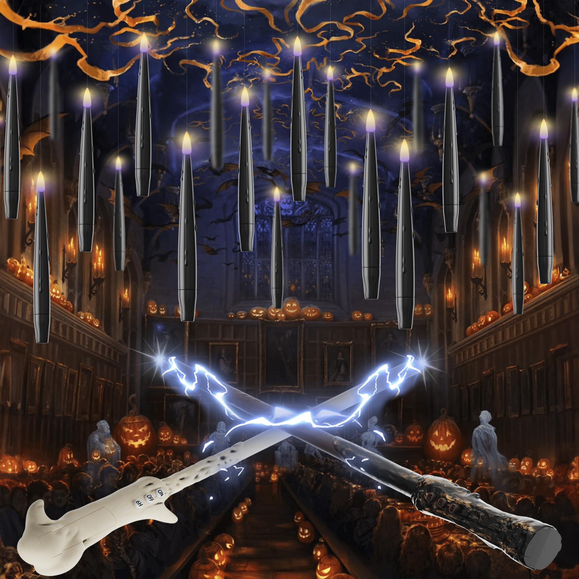 Transform your holiday dรฉcor with our battery-operated floating candles! These magical floating candles with wand are powered by a remote control wand (1x AAA battery required, not included), allowing you to easily light up your candles at the push of a button. Create a flickering glow by holding down the ON button, just like real flames. Perfect for enhancing your floating candle lights, these flameless candles with wand add a warm, festive ambiance to your space. Designed for easy hanging, these floating candles come with nearly invisible fishing lines (6.5 feet long) for versatile placement on your tree, wreaths, or chandeliers. Whether you're using them as flameless floating candles or adding a soft glow with LED floating candles, they are a safe and stylish way to decorate. These battery-operated floating candles are the ideal choice for creating a magical holiday atmosphere without the risk of fire. This set includes 20 LED floating candles with pre-attached fishing lines, 2 magic wand remotes with ON/OFF and 6-hour TIMER functions, hooks, and glue dots for easy DIY setup. These battery-operated floating candles ensure long-lasting enjoyment and are perfect for creating your own floating candle lights. Ideal for holiday parties, weddings, or cozy evenings, these candles make a thoughtful gift, adding a touch of holiday magic to any home with flameless floating candles and taper floating candles.