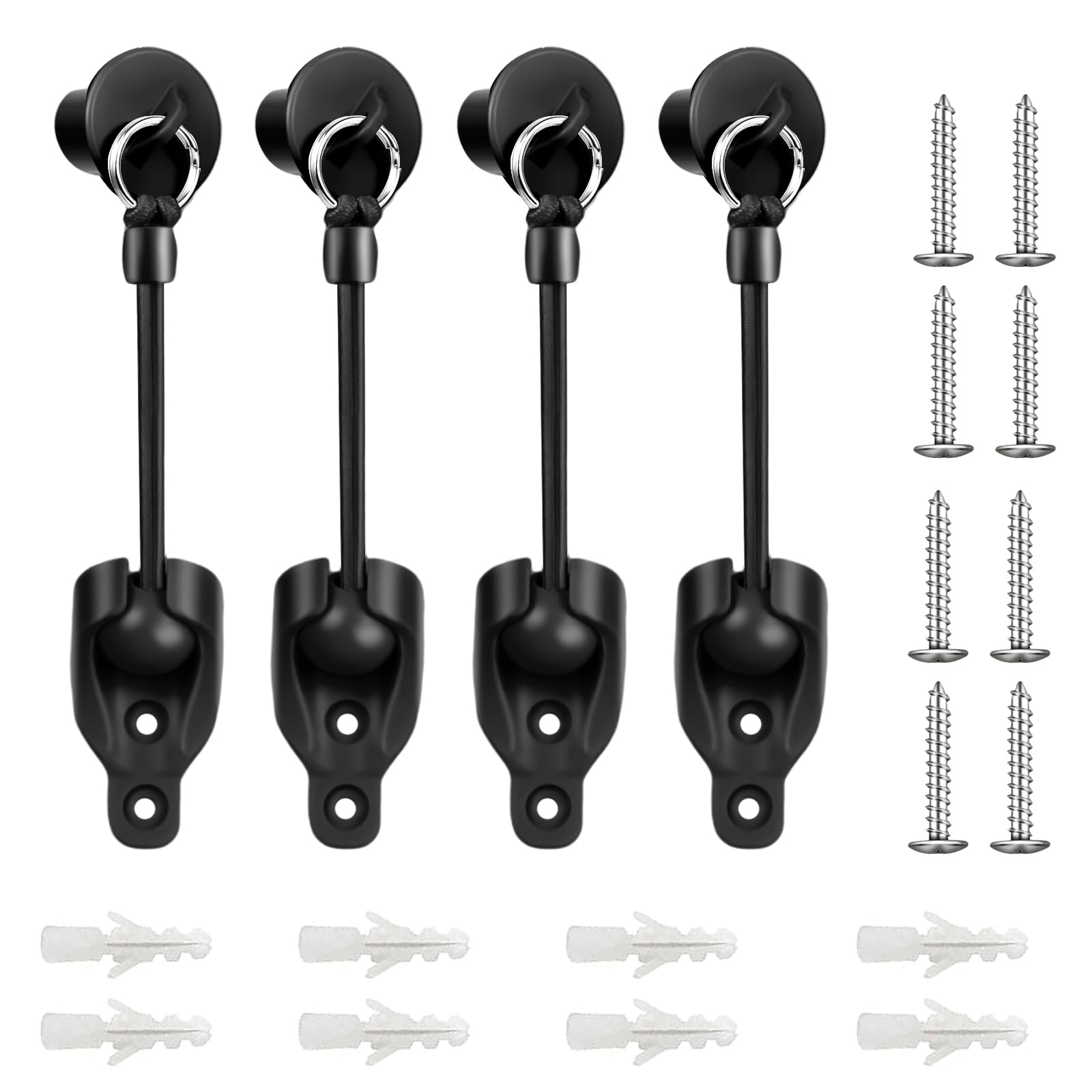【Basic Infomation】 2 pack bungee kit includes 4 windproof balls and bases, 4 pull ring end caps, 8 high-density stainless steel screws and 8 plastic anchors.