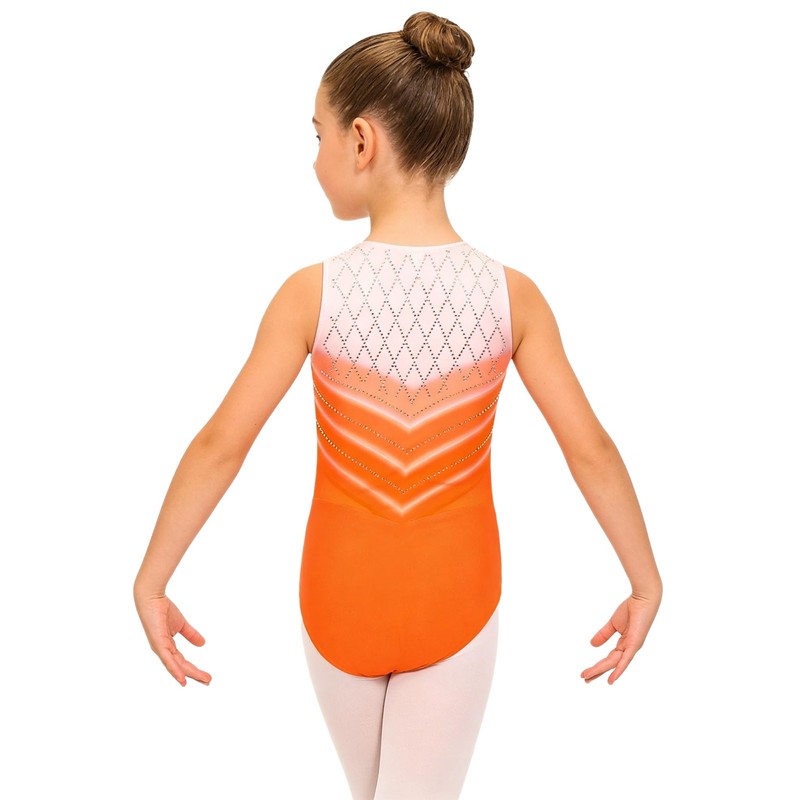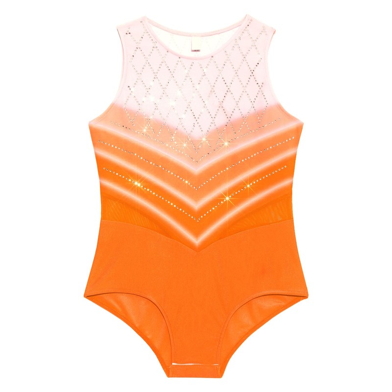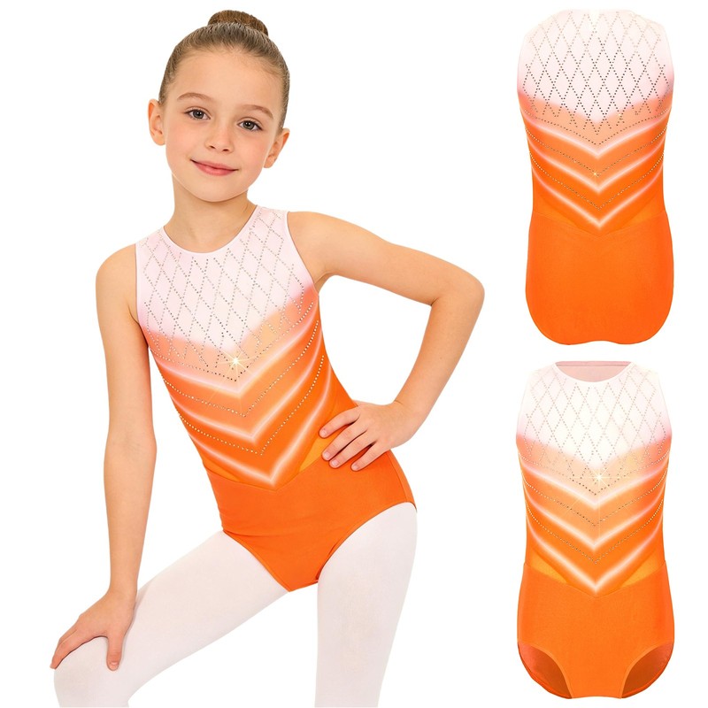 The gradient color design is trendy and eye-catching, making the girl stand out in the crowd and adding a touch of fashion to the gymnastic performance.