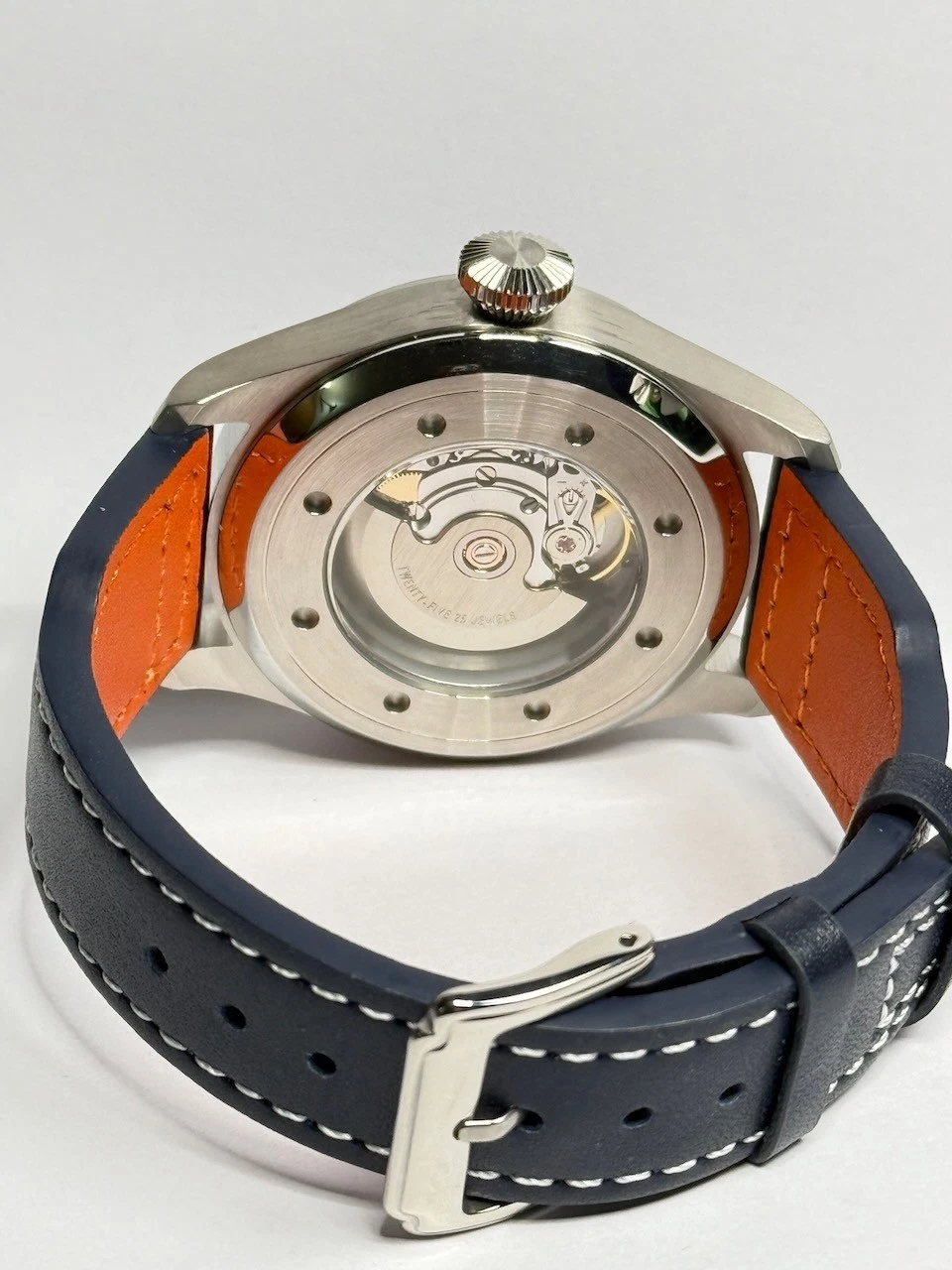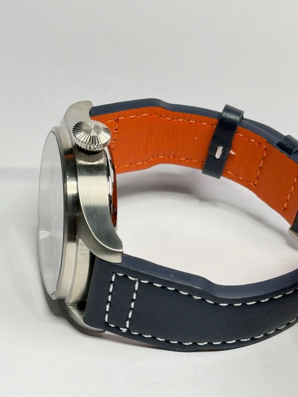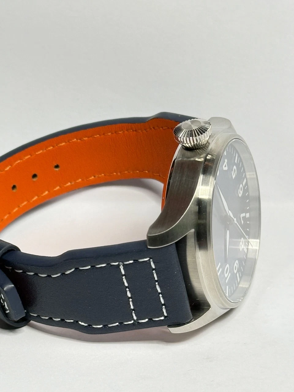 The Big Aviator ti offre una serie di funzionalità per le quali dovresti pagare molti più soldi altrove. La massima qualità di lavorazione in combinazione con un vetro zaffiro con rivestimento antiriflesso su un lato e il movimento automatico originale PT5000, che abbiamo regolato nel modo più preciso possibile, è la base per un orologio che vi accompagnerà per molti anni nella vita di tutti i giorni. Il movimento offre qualità e precisione svizzere a prezzi accessibili. Inoltre, c'è una resistenza all'acqua di 20 ATM/200 metri.